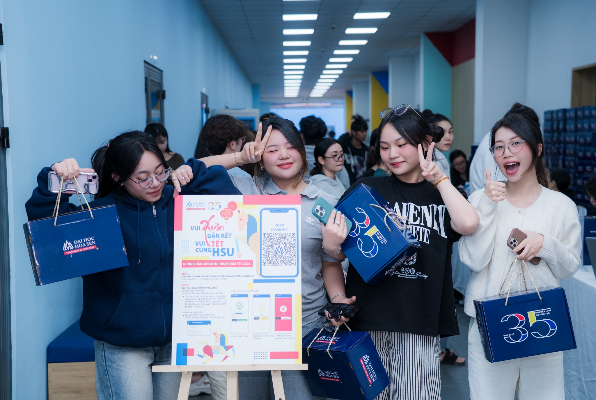 Cũng trong ngày 8/1 tại cơ sở Thành Thái, Trung tâm Trải nghiệm Sinh viên và Quan hệ Doanh nghiệp HSU đã tổ chức hoạt động tặng quà Tết truyền thống, thắp lên niềm vui và sự đoàn kết trong cộng đồng sinh viên. Đây cũng là bước khởi đầu cho chuỗi sự kiện đặc biệt hướng tới cột mốc 35 năm thành lập Trường, một hành trình ý nghĩa và đầy tự hào.