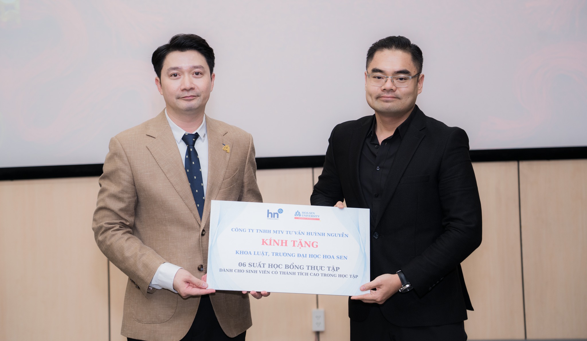 - Công ty TNHH MTV Tư vấn Huỳnh Nguyễn trao 6 suất học bổng thực tập.