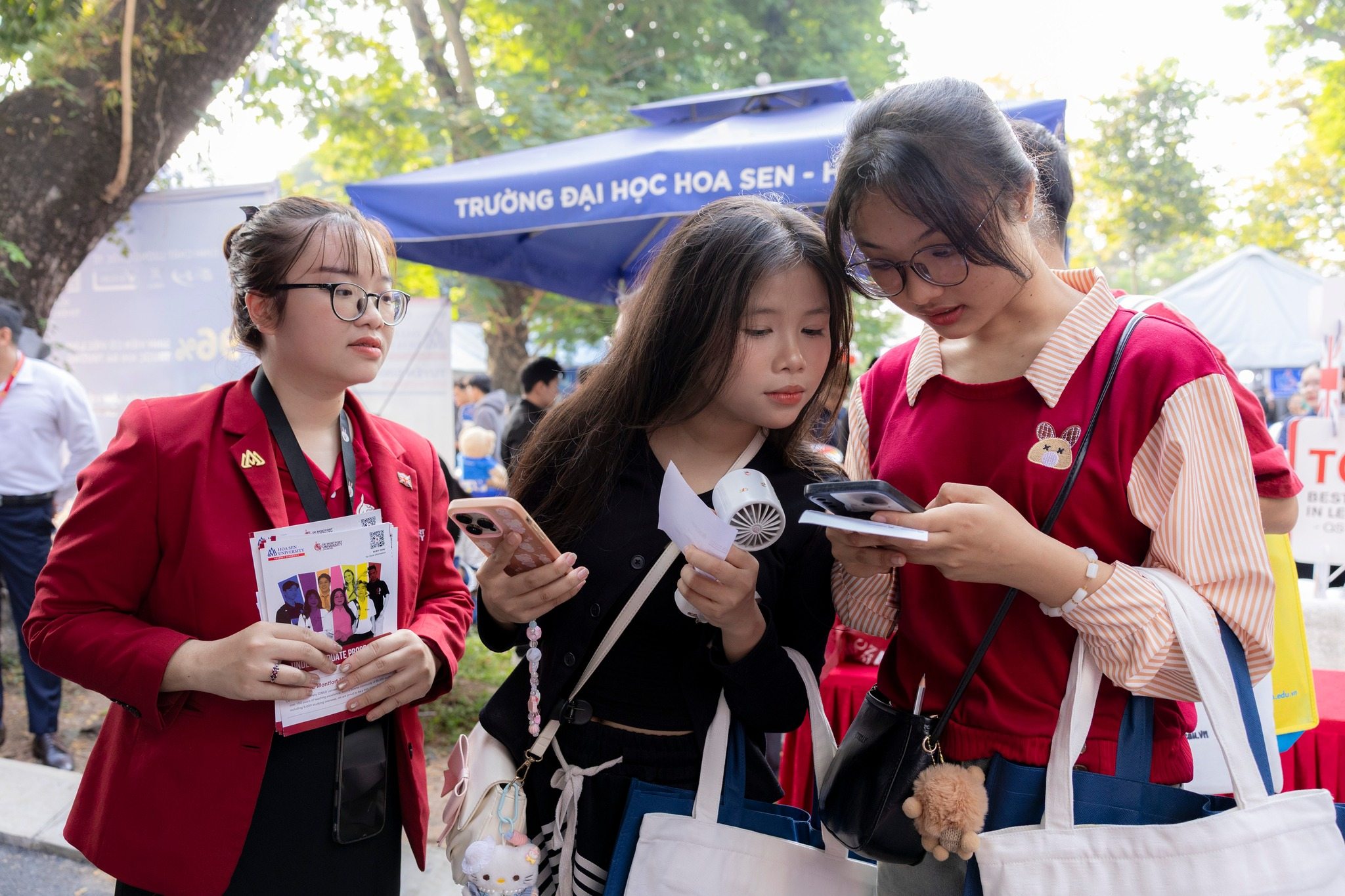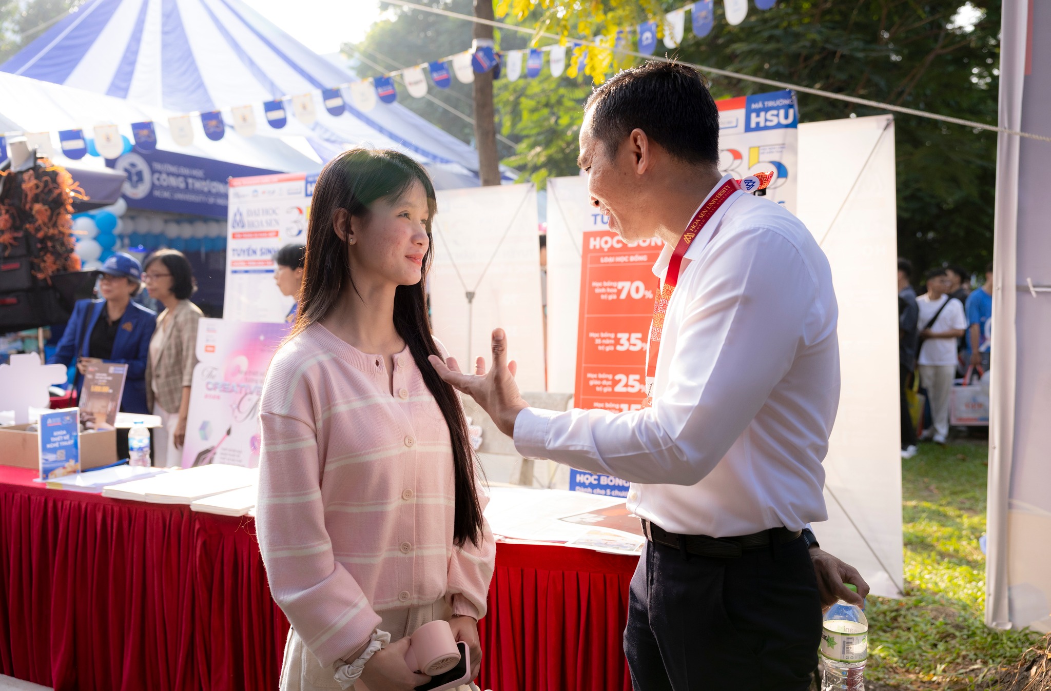 “Em đã tham quan nhiều gian hàng nhưng dừng lại khá lâu ở gian hàng của Đại học Hoa Sen vì các anh chị tư vấn rất kỹ. Trước đây em khá lo lắng khi chọn ngành, nhưng sau khi được tư vấn cụ thể về chương trình học và định hướng nghề nghiệp, em thấy rõ ràng hơn và có thêm động lực cho lựa chọn của mình.”