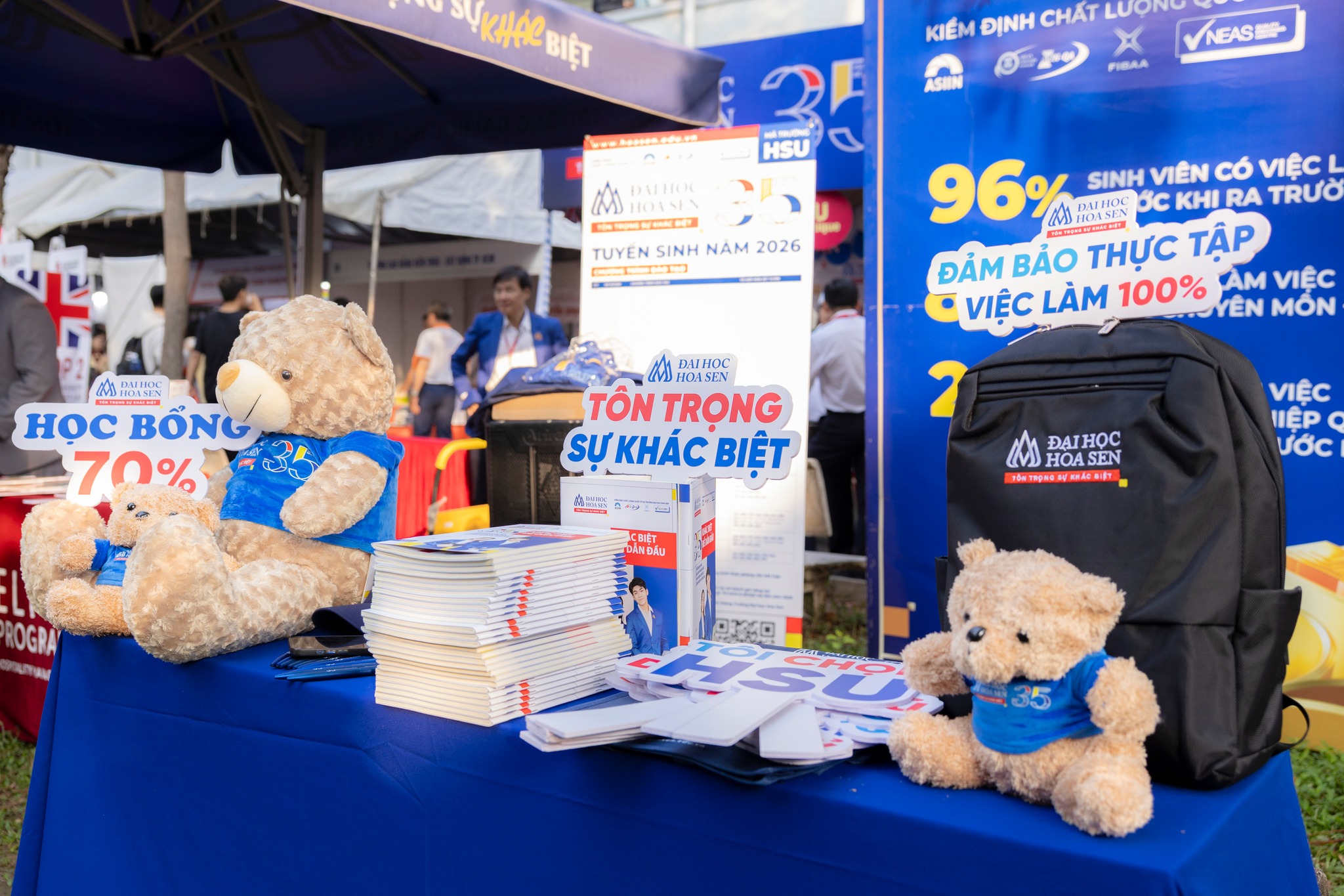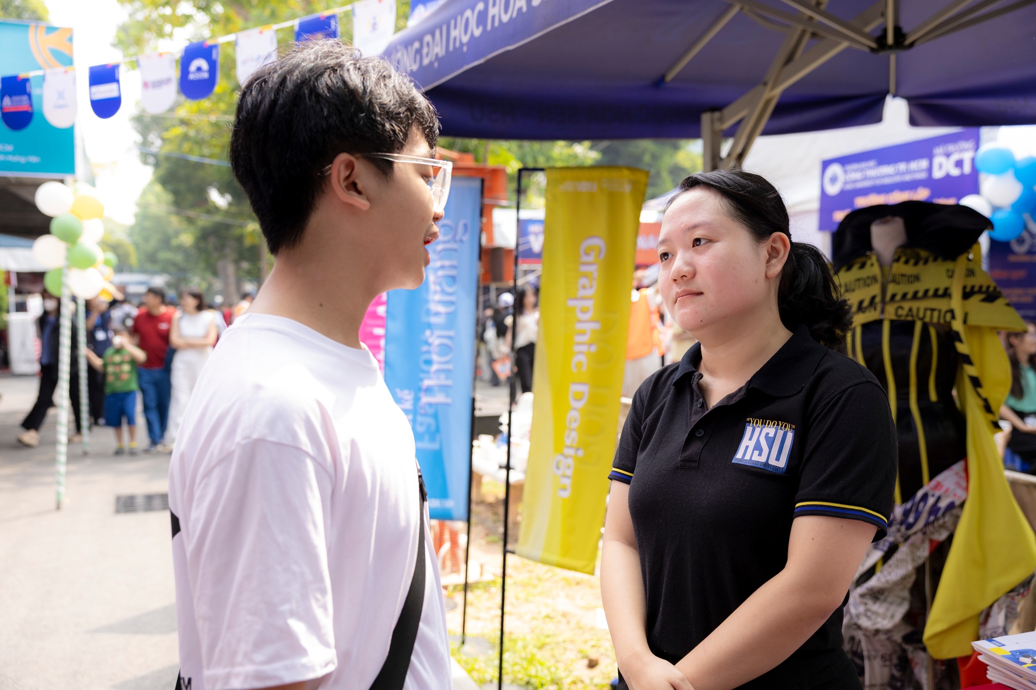 Trong không gian đó, gian hàng HSU nổi bật với chuỗi hoạt động trải nghiệm đa dạng, thông tin tuyển sinh rõ ràng và đội ngũ tư vấn nhiệt tình, giúp học sinh hình dung cụ thể hơn về hành trình đại học và con đường nghề nghiệp tương lai.