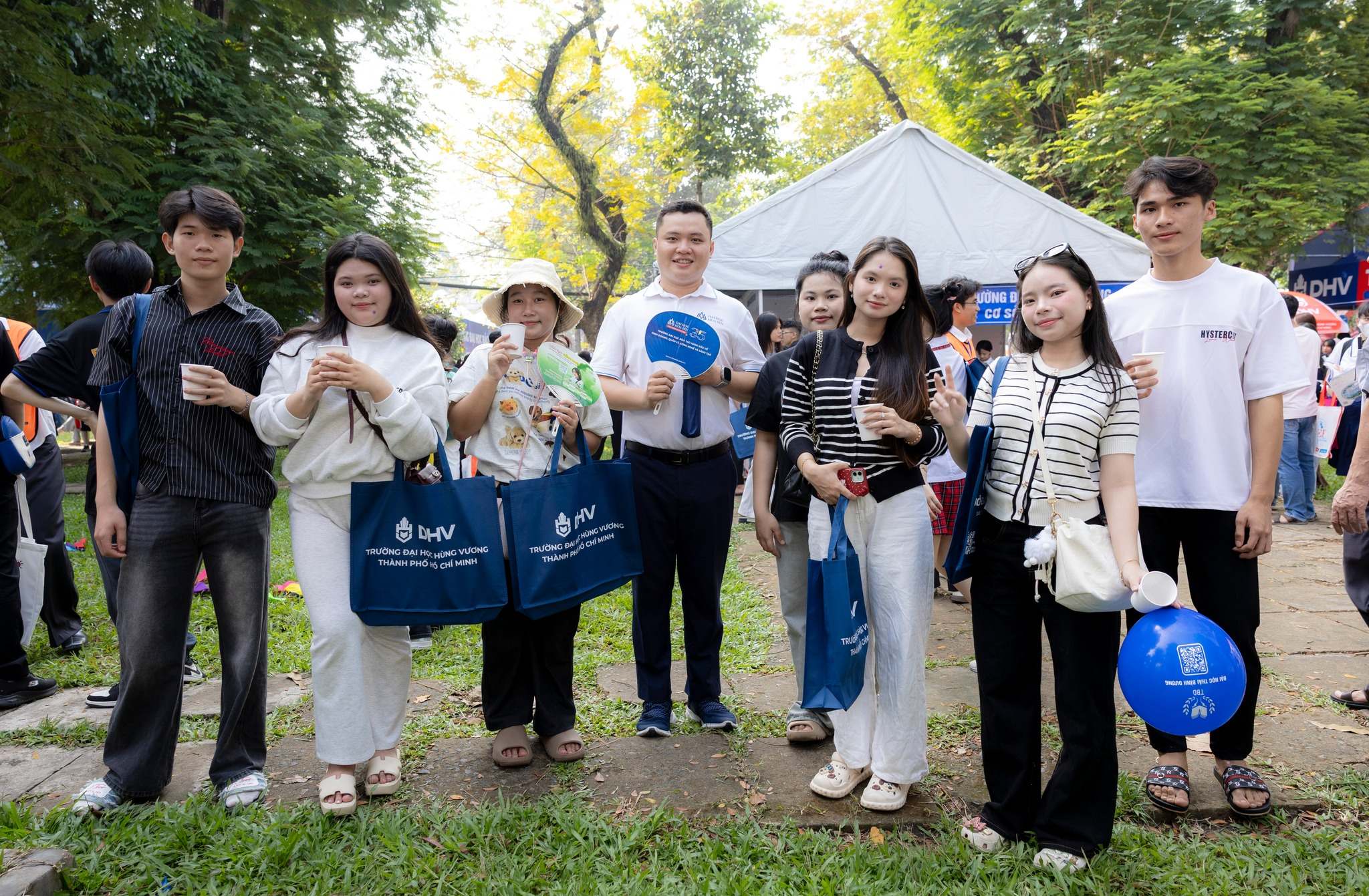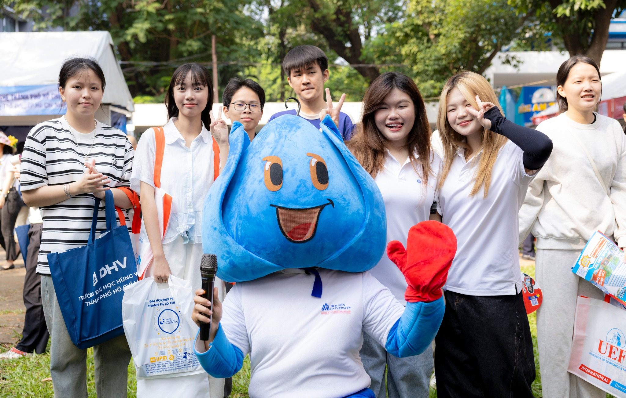 Bên cạnh đó, hàng loạt quà tặng thương hiệu HSU như gấu bông, ba lô, dù, nón, sổ tay, quạt, viết và túi vải cũng được trao tận tay các bạn học sinh, góp phần tạo nên một không gian trẻ trung và gần gũi.