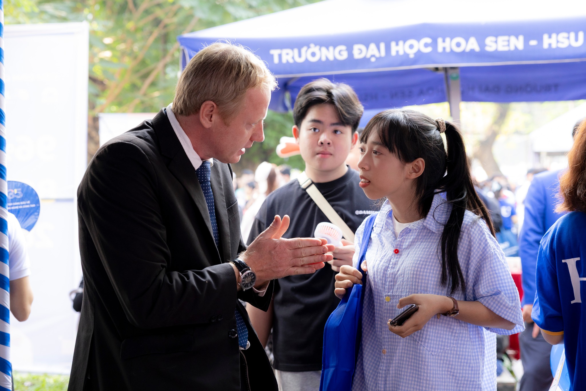 “Không khí ở gian hàng HSU rất trẻ trung và gần gũi. Các chuyên viên giải thích rõ ràng về các lựa chọn ngành học nên phụ huynh như tôi cảm thấy yên tâm hơn khi đồng hành cùng con,”
