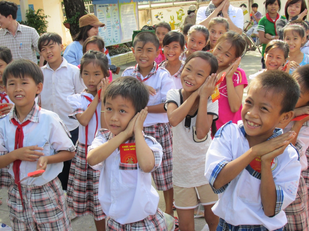 Nụ cười của các em học sinh trường tiểu học Hòa Hiệp khi các giảng viên, nhân viên trẻ Hoa Sen đến thăm và chúc Tết