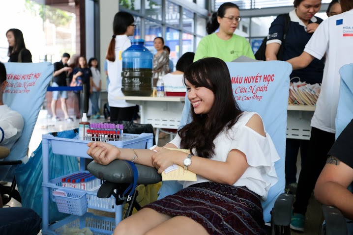 Đông đảo giảng viên, nhân viên và sinh viên Hoa Sen đã tới tham gia chương trình. Cụ thể, có hơn 350 lượt đăng ký, trong đó 233 người đạt yêu cầu hiến máu. Nhiều bạn từ cơ sở Cao Thắng, cơ sở Tản Viên, thậm chí xa nhất là cơ sở Quang Trung cũng có mặt tại Nguyễn Văn Tráng từ rất sớm. Đặc biệt, không ít bạn có hơn 5 năm hiến máu liên tục như Nguyễn Thái Ngọc Yến (Cựu sinh viên khóa 08). Ngọc Yến cho biết, chưa bỏ lỡ một dịp hiến máu tình nguyện nào tổ chức tại trường. Năm nay, Yến là người đến sớm và là người đầu tiên hiến máu.