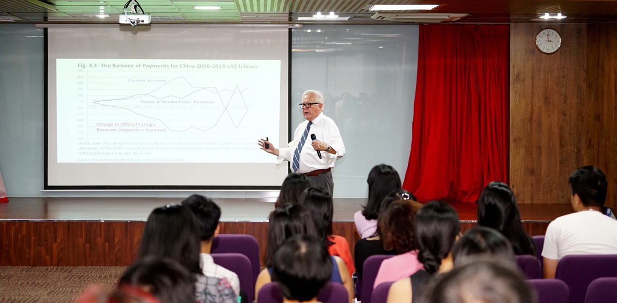 GS.TS James Riedel đã có buổi thuyết giảng tại Trường Đại học Hoa Sen với tiêu đề “What’s behind US and Global trade imbalances”, phân tích cán cân thương mại Mỹ-Trung.