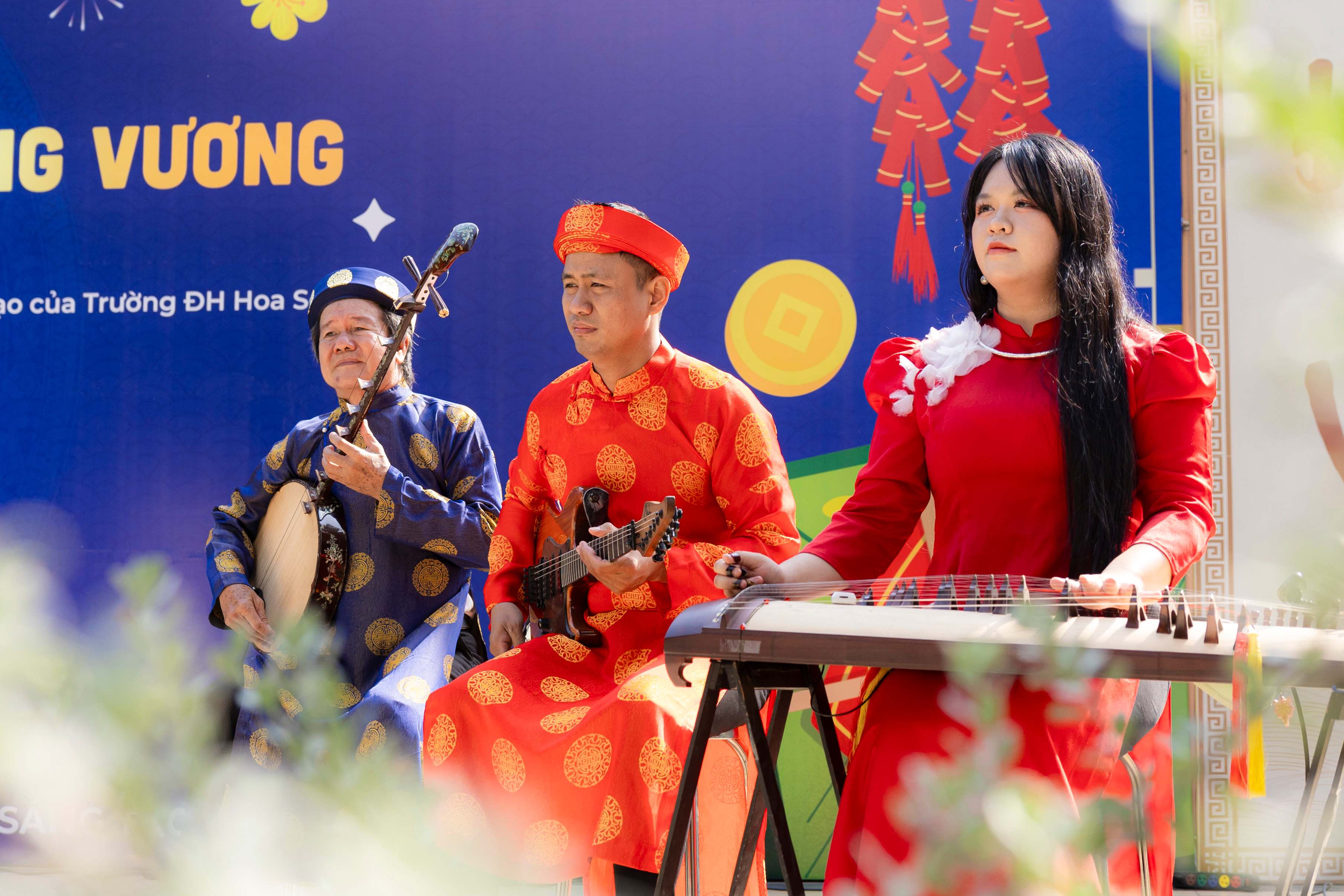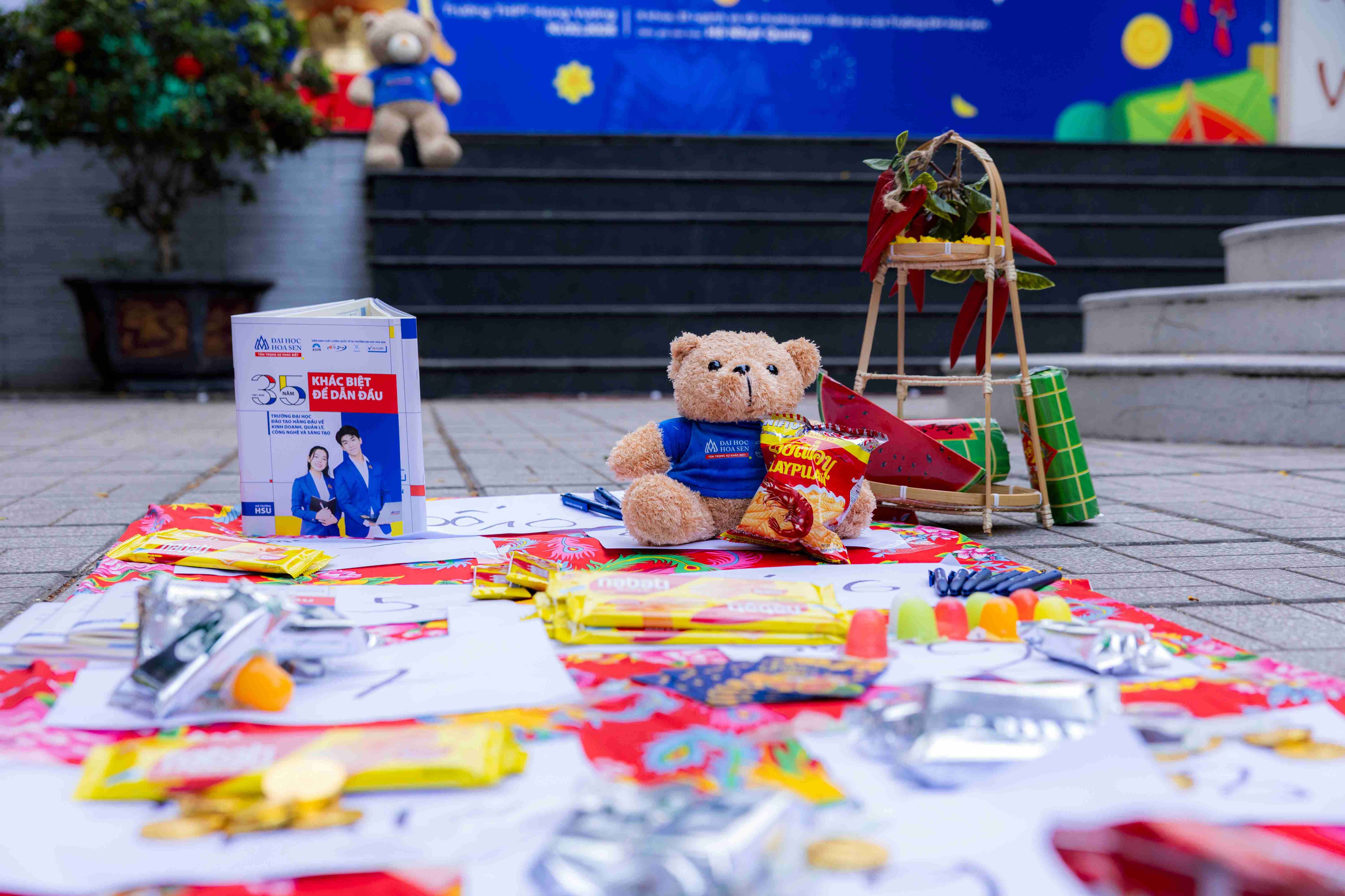Bên cạnh đó, khu vực gian hàng Trung tâm Tuyển sinh được trang trí như một góc Tết truyền thống với trò chơi dân gian, giao lưu acoustic và nhiều hoạt động tương tác. Đây cũng là nơi học sinh trực tiếp trao đổi thông tin tuyển sinh, phương thức xét tuyển và lộ trình học tập. Không khí trò chuyện thân thiện giúp nhiều học sinh cảm thấy yên tâm và tự tin hơn khi tìm hiểu về bậc đại học.