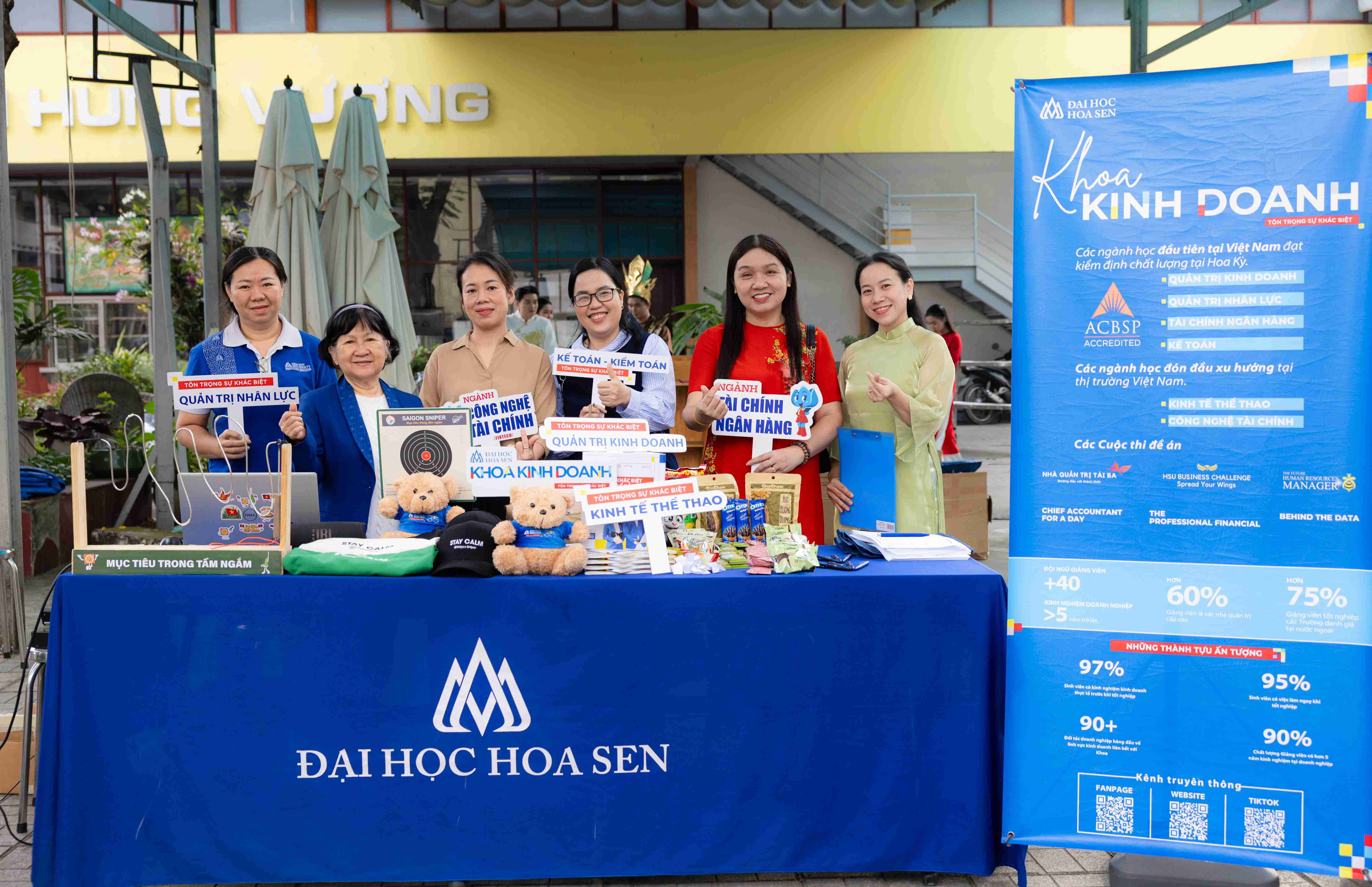 Gian hàng Khoa Kinh doanh mang đến trải nghiệm bắn súng laser và trang trí không gian theo chủ đề Tết. Những hoạt động mang tính thử thách nhẹ nhàng giúp học sinh cảm nhận sự năng động, linh hoạt của môi trường kinh doanh. Nhiều bạn cũng tìm hiểu thêm về kỹ năng tổ chức và vận hành sự kiện qua cách gian hàng được thiết kế.