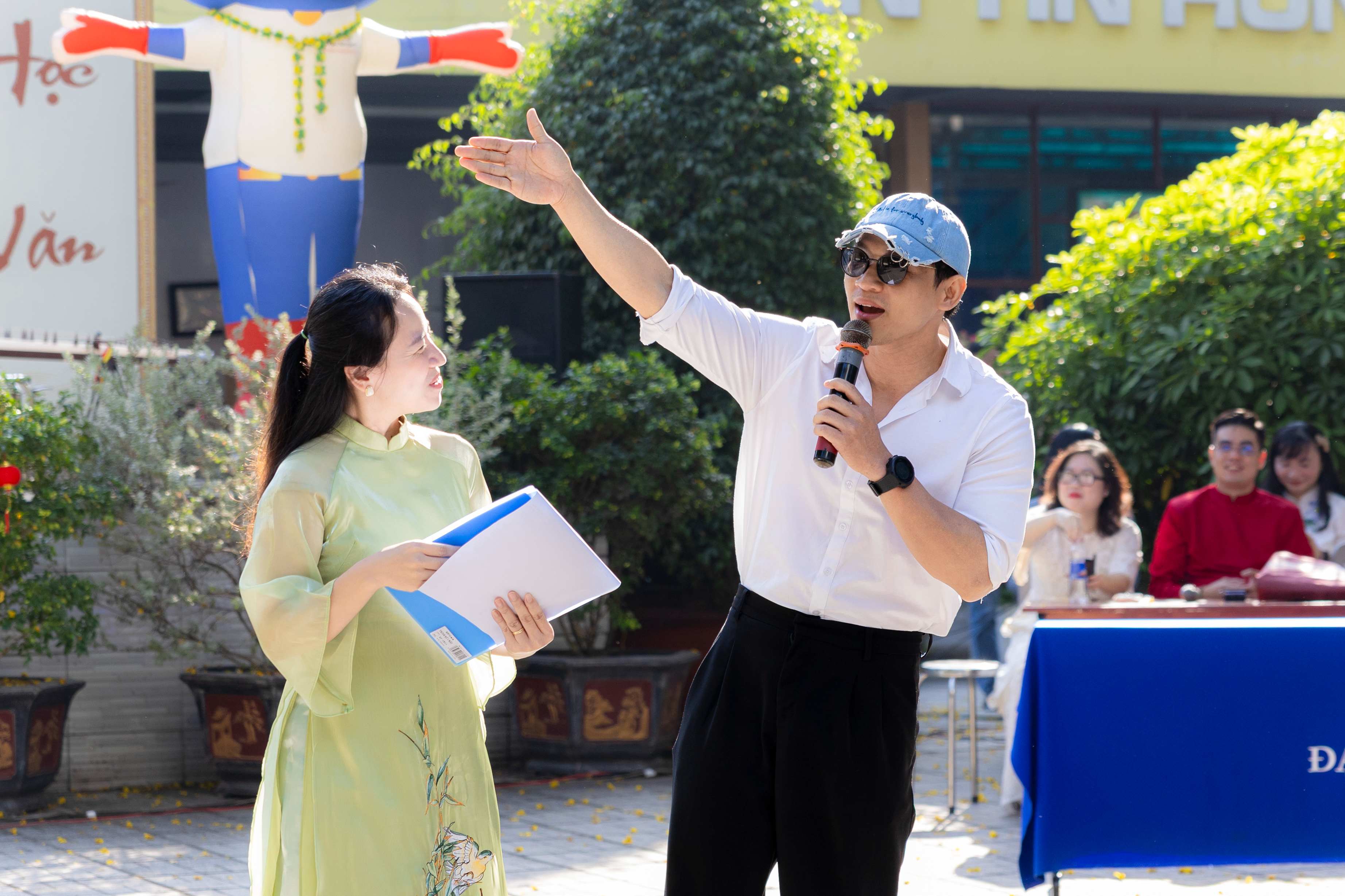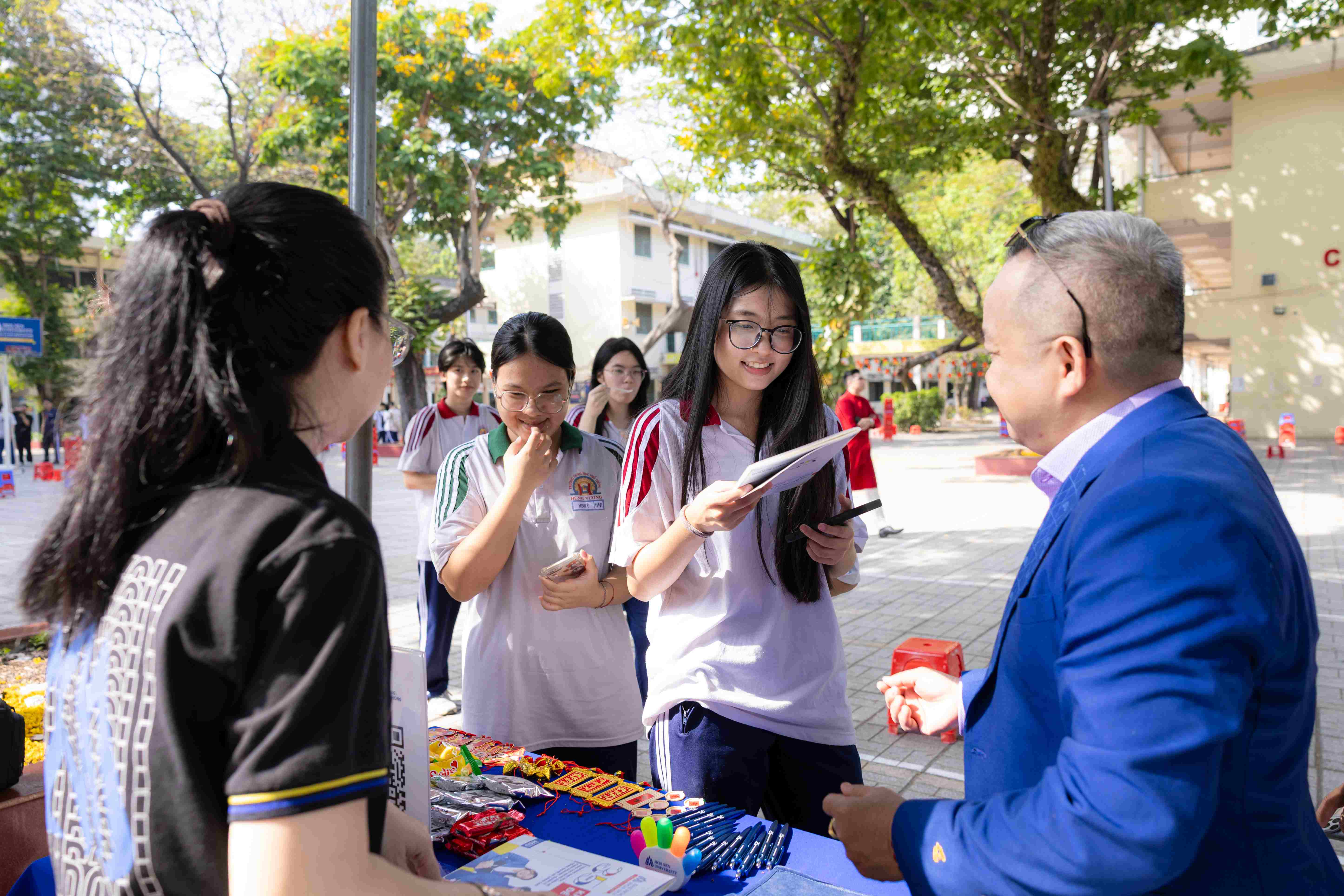 Các tiết mục giao lưu bằng nhiều ngôn ngữ của các bạn sinh viên HSU đã mang đến bầu không khí sôi nổi và trẻ trung cho chương trình. Sự gần gũi trong cách thể hiện từ các anh chị sinh viên giúp học sinh cảm nhận rõ nét hơn nhịp sống năng động của môi trường đại học.