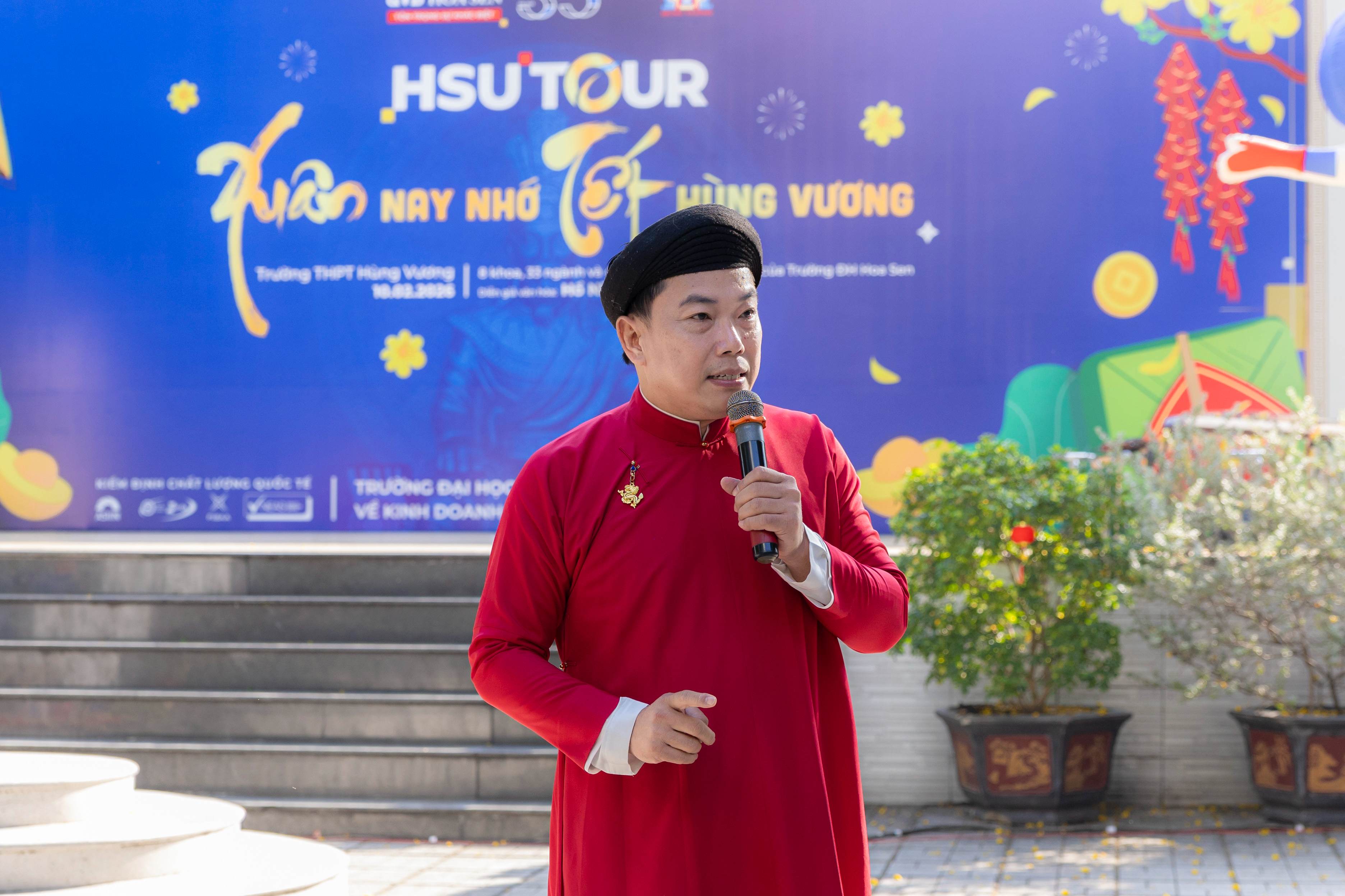 Một trong những nội dung để lại nhiều ấn tượng tại HSU TOUR là chuyên đề văn hóa “Xuân nay nhớ Tết Hùng Vương”. Từ câu chuyện về nguồn gốc bánh chưng bánh giầy, diễn giả văn hóa Hồ Nhựt Quang dẫn dắt học sinh nhìn lại những giá trị truyền thống đã gắn bó với đời sống người Việt qua nhiều thế hệ. Những phong tục quen thuộc lại được kể bằng góc nhìn sinh động, giúp các em học sinh hiểu rõ hơn ý nghĩa của gìn giữ bản sắc văn hóa trong đời sống hiện đại.