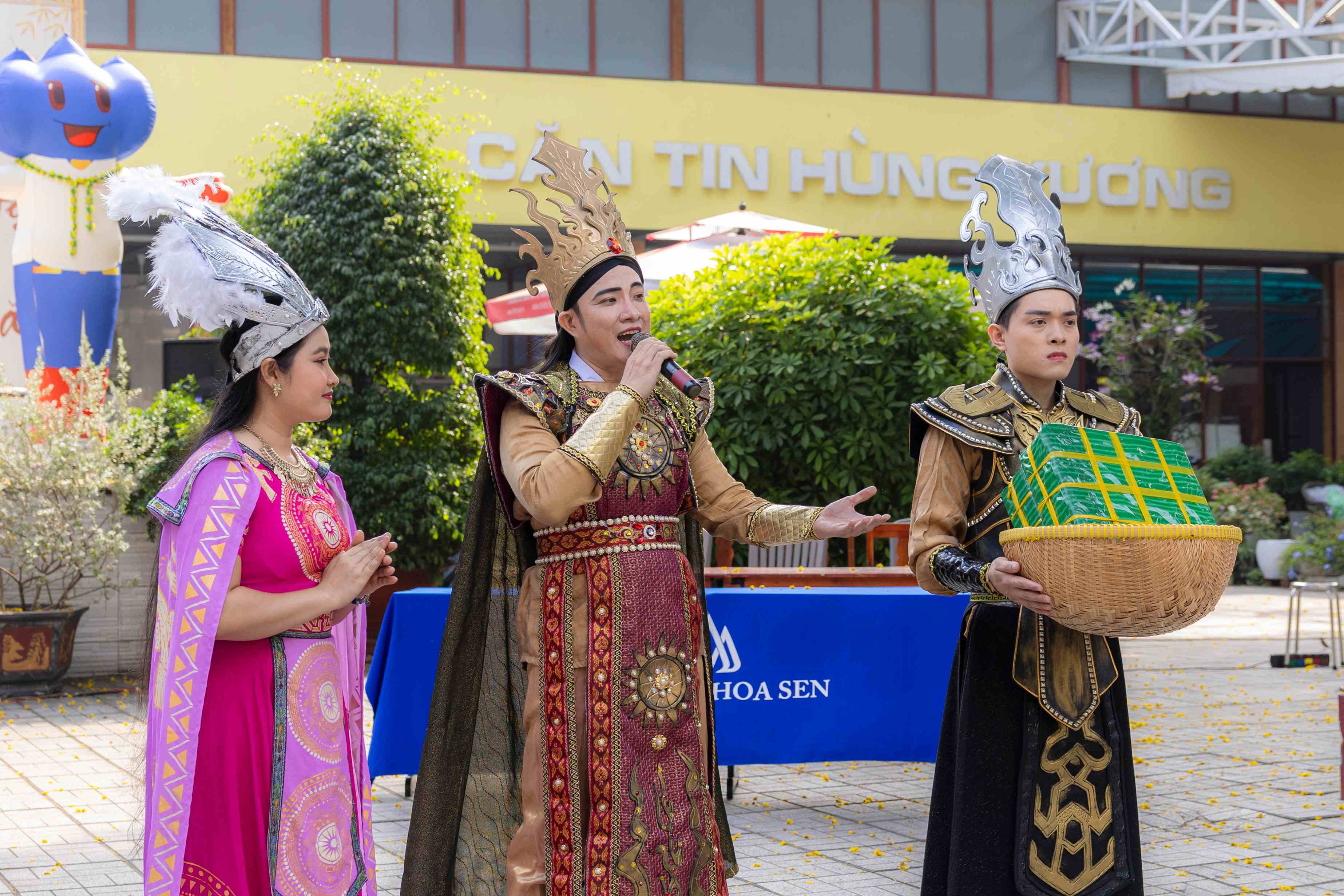 Tiếp theo đó, trích đoạn cải lương tái hiện sự tích bánh chưng bánh giầy đã mang đến một trải nghiệm thú vị cho học sinh. Âm nhạc, lời ca và diễn xuất trên sân khấu khiến câu chuyện văn hóa trở nên gần gũi, dễ cảm nhận. Nhiều học sinh chia sẻ rằng các em lần đầu xem cải lương trực tiếp trong khuôn viên trường học, và cảm thấy hào hứng khi văn hóa truyền thống được giới thiệu theo cách trẻ trung, dễ tiếp cận.