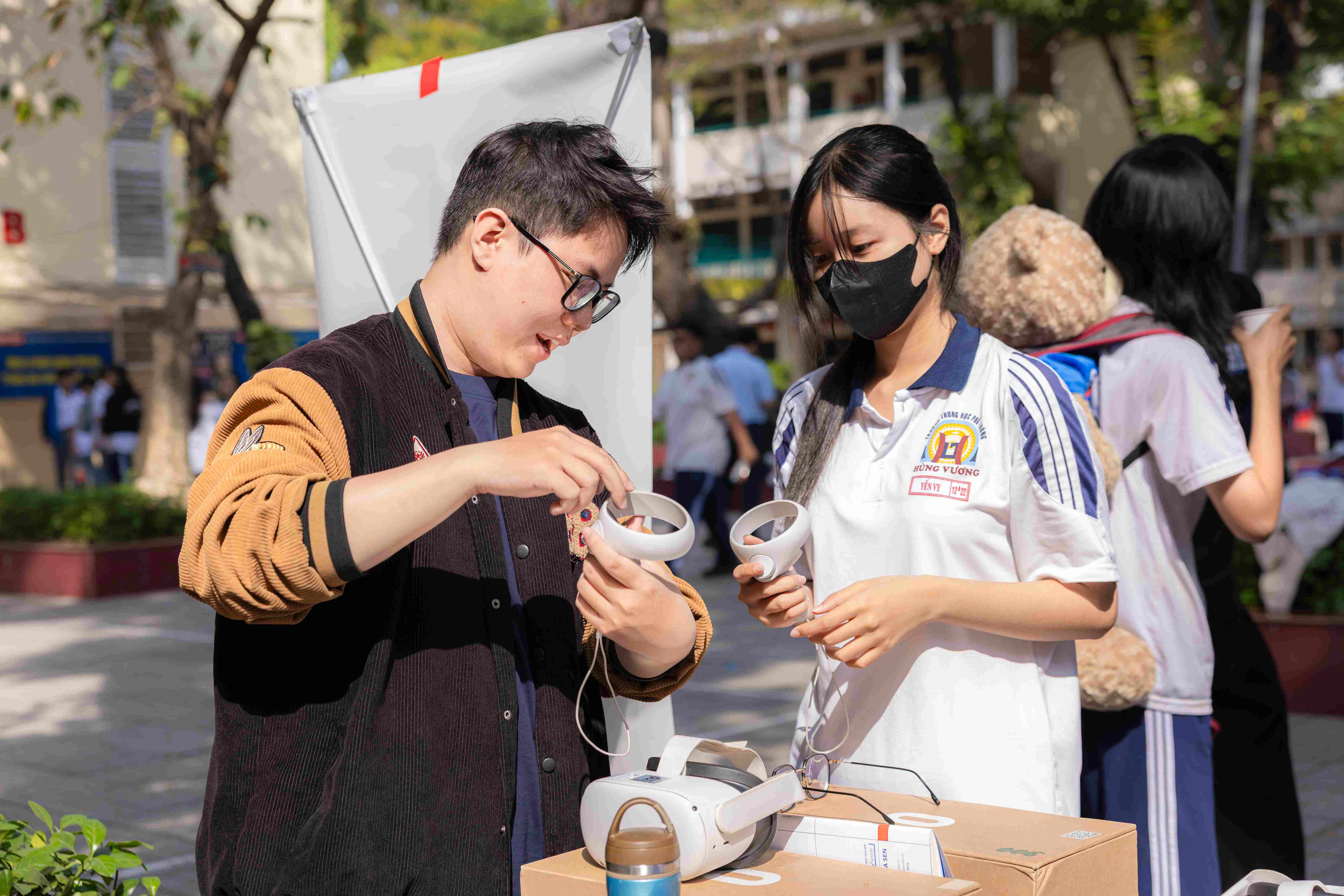 Sau hoạt động trên sân khấu, khu vực trải nghiệm tại gian hàng của 8 Khoa, Viện đào tạo và Hợp tác Quốc tế, Trung tâm Tuyển sinh là điểm dừng chân thu hút đông đảo học sinh. Không gian được trang trí theo chủ đề Tết rực rỡ, xen kẽ trò chơi dân gian, âm nhạc acoustic và các hoạt động tương tác tạo nên bầu không khí vui tươi, gần gũi. Mỗi gian hàng đến một cách tiếp cận khác nhau, giúp học sinh vừa khám phá ngành học, vừa trực tiếp trải nghiệm.