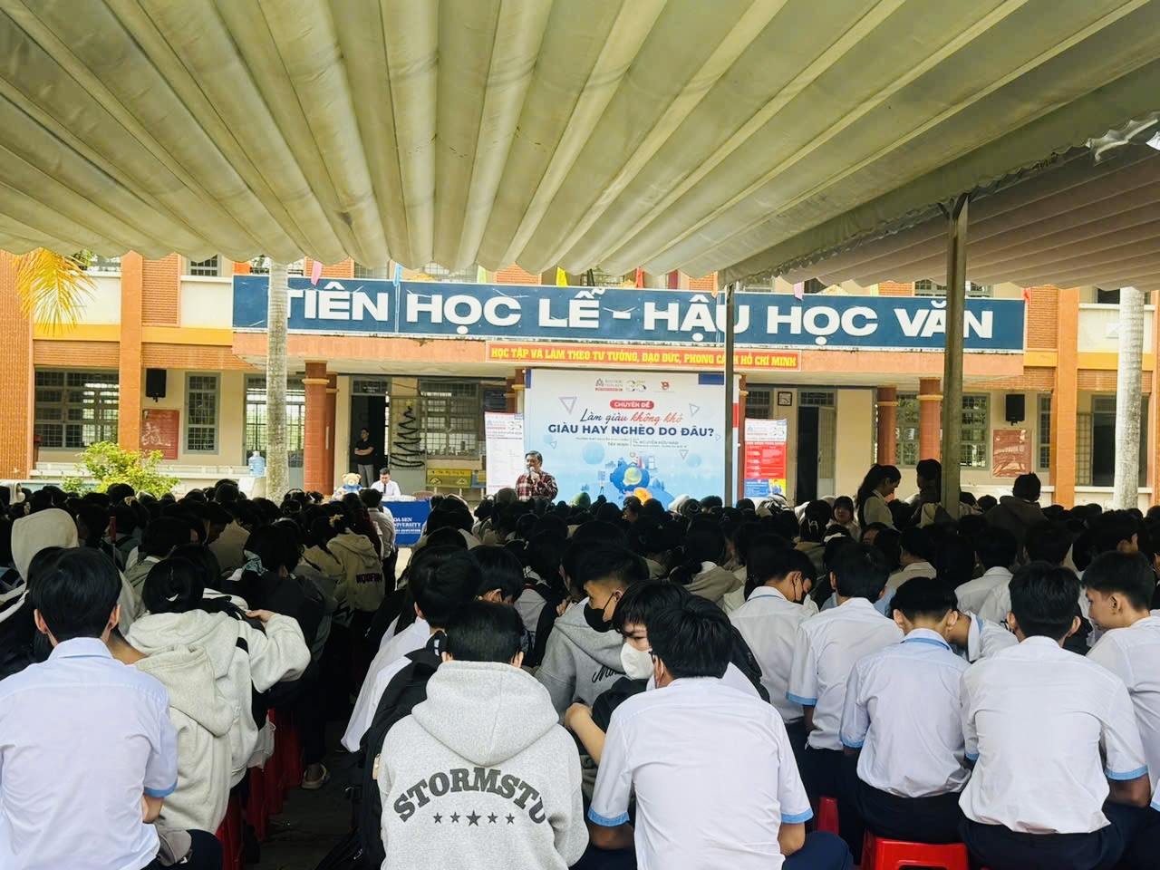 Ngày 16/1/2026, hơn 1.500 học sinh khối 11 và 12 Trường THPT Nguyễn Đình Chiểu (Tây Ninh) đã có buổi sáng đối thoại nhiều suy ngẫm về câu chuyện tài chính cùng chuyên gia đến từ Trường Đại học Hoa Sen. Thông qua chuyên đề “Làm giàu không khó, Giàu hay nghèo do đâu?”, những câu hỏi về tư duy làm giàu, lựa chọn học tập và định hướng tương lai được trao đổi thẳng thắn, gần gũi và thiết thực.