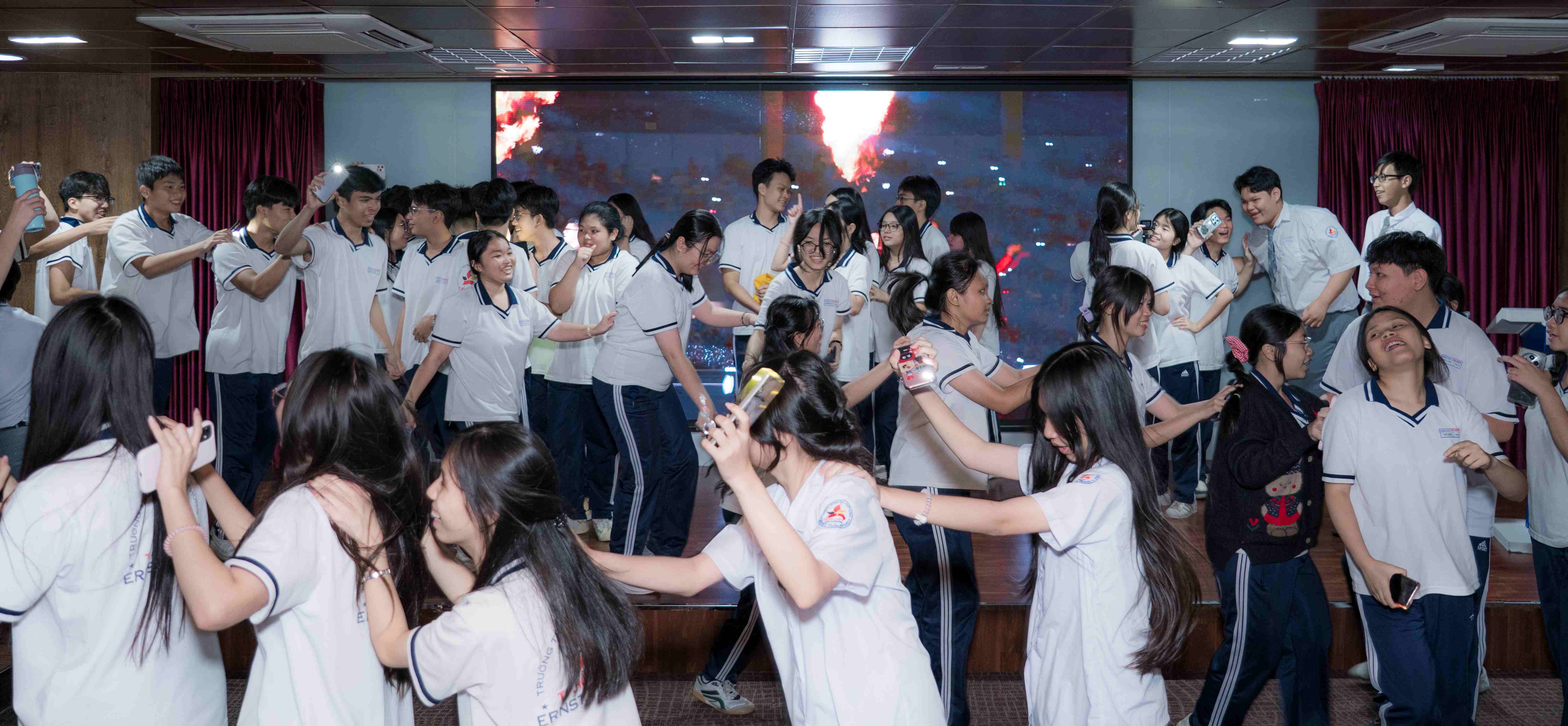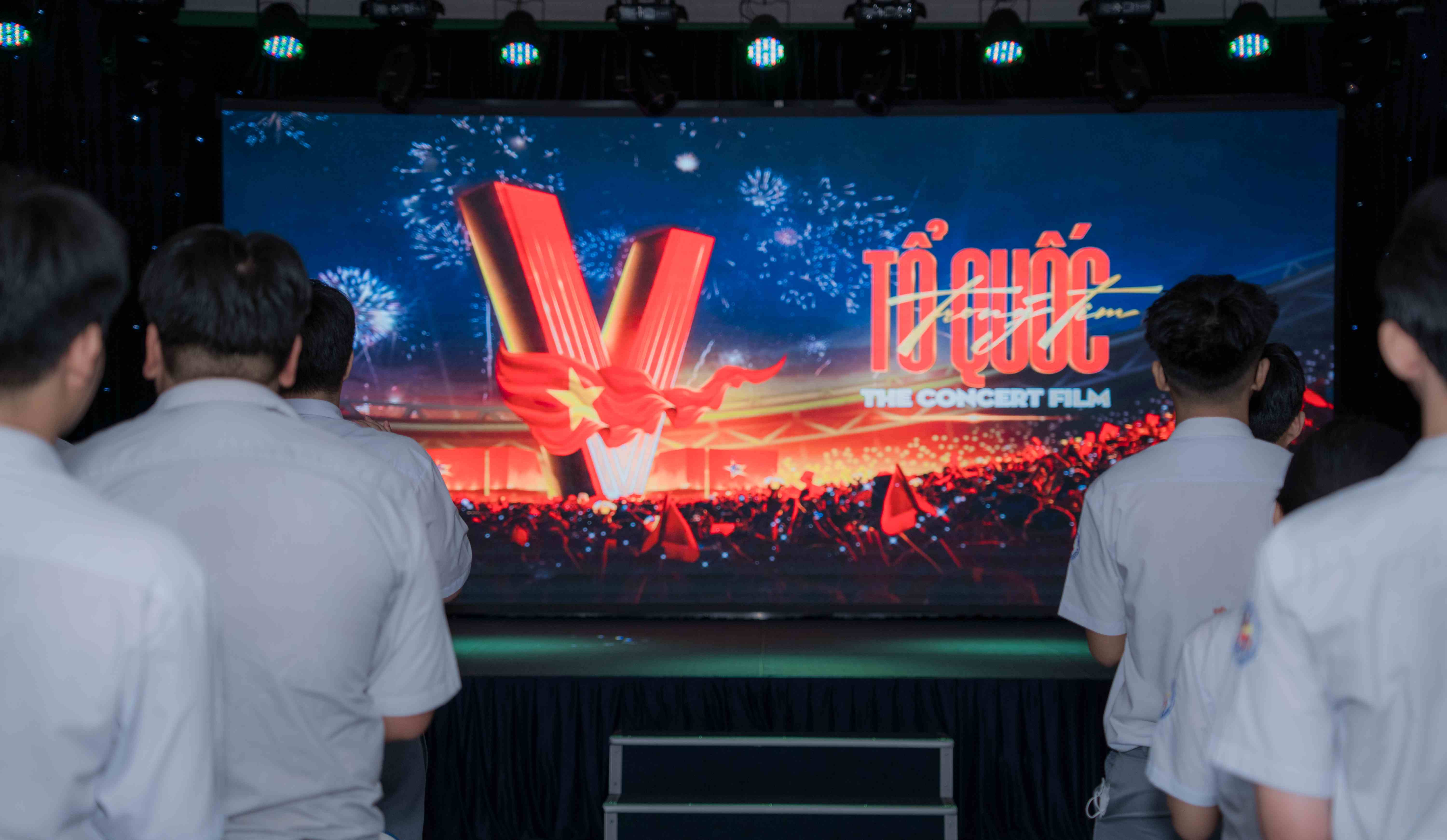 Một trong những điểm nhấn đáng nhớ nhất trong Campus Tour của học sinh THPT Ten Lơ Man tại HSU chính là buổi chiếu phim hòa nhạc “Tổ quốc trong tim”. Tác phẩm đã khơi dậy một làn sóng cảm xúc sâu lắng, đưa tinh thần yêu nước lan tỏa một cách nhẹ nhàng nhưng đầy sức mạnh thông qua nghệ thuật.