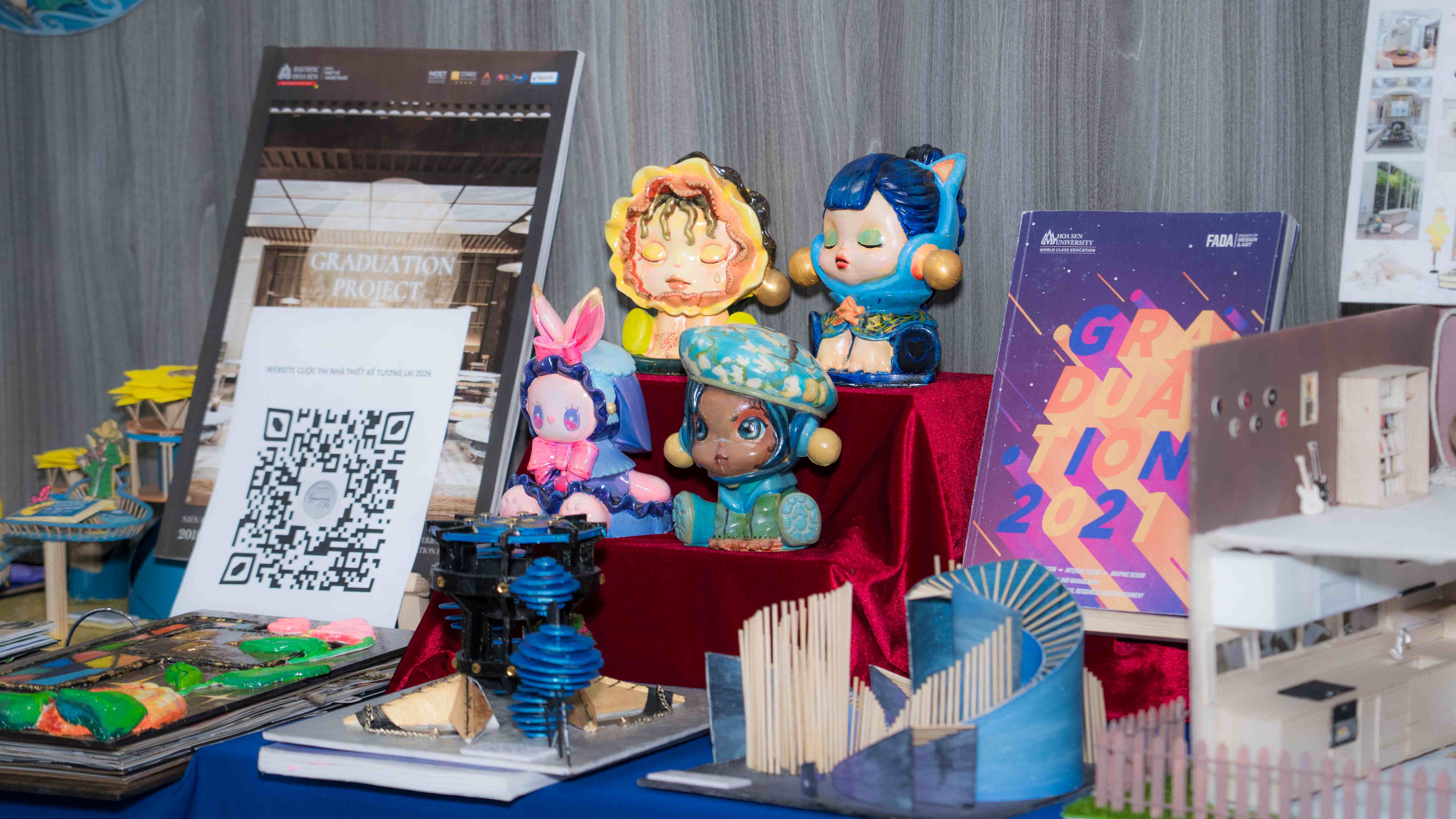 Không gian của Khoa Thiết kế – Nghệ thuật HSU lại mang sắc thái rất riêng với workshop nghệ thuật, giao lưu cùng họa sĩ – giảng viên và góc trưng bày các sản phẩm thiết kế. Đây là nơi các bạn trẻ được khơi mở cảm hứng, cảm nhận tinh thần sáng tạo tự do – điều mà HSU chú trọng nuôi dưỡng trong đào tạo lĩnh vực Thiết kế và nghệ thuật.