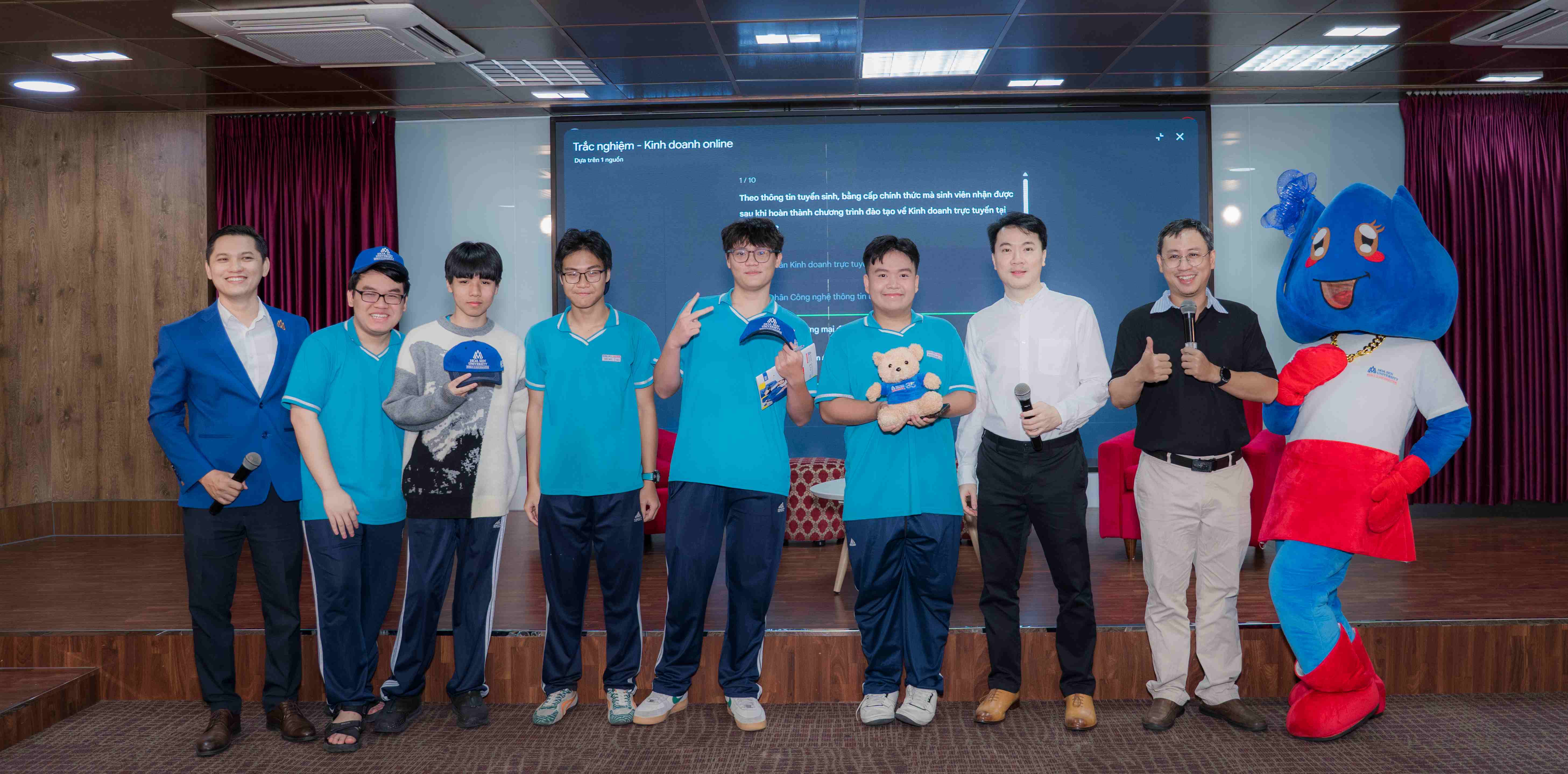 Khi ghé Khoa Kinh doanh, học sinh được thử sức với các bài tập nhỏ về phân tích kinh doanh, nhận diện thương hiệu, xây dựng chiến lược Marketing. Những mô hình, sản phẩm sáng tạo từ sinh viên được trưng bày trực quan giúp các bạn hình dung về nghề một cách sống động và thực tế.