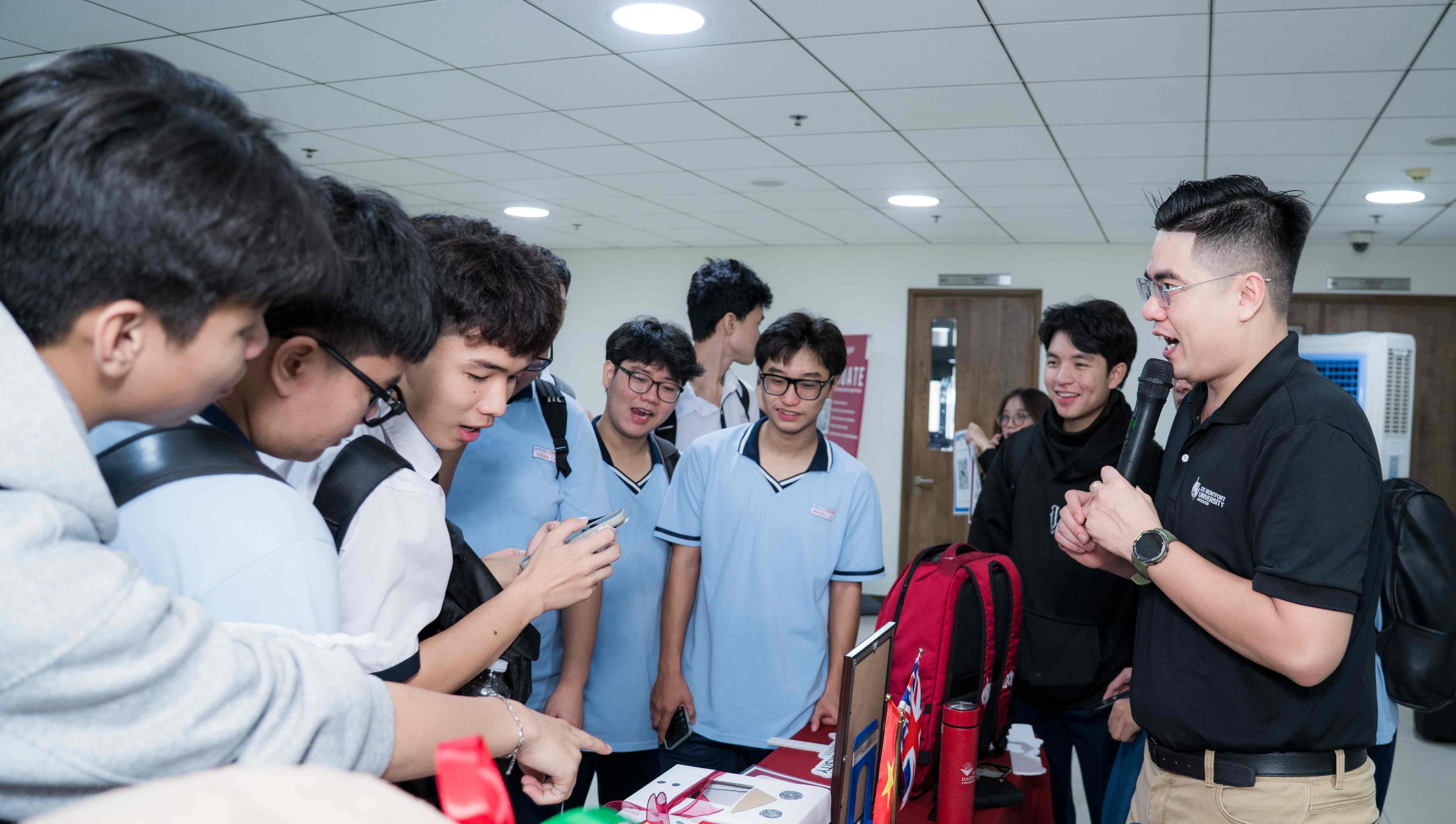 Song song đó là các hoạt động trải nghiệm tại chương trình liên kết quốc tế DMU. Tại đây, học sinh tìm hiểu cơ hội học chương trình chuẩn quốc tế ngay tại Việt Nam, mở ra lựa chọn mới cho hành trình học tập toàn cầu. Tại khu vực sảnh của trường mang đến không gian giao lưu âm nhạc Acoustic và tương tác đa văn hoá, đầy màu sắc và năng lượng.