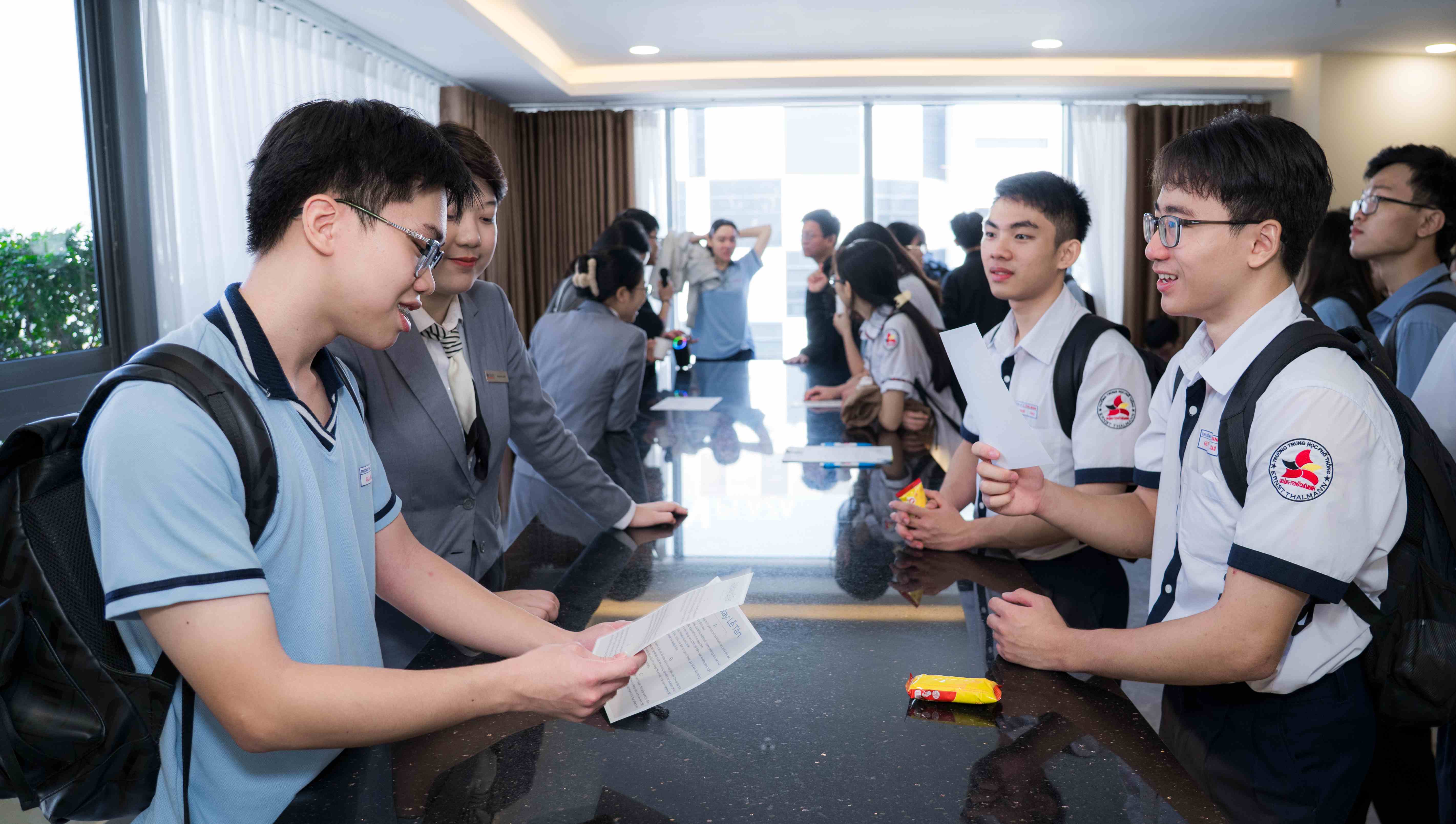 Tiếp theo đó, các bạn học sinh được tham quan những không gian đặc trưng của HSU như phòng lab, studio sáng tạo, phòng thực hành nghề nghiệp, thư viện mở – nơi mỗi bước chân đều mang đến sự tò mò và hứng khởi. Những hoạt động mô phỏng nghề nghiệp nhanh cùng giảng viên HSU giúp học sinh lần đầu được thử vai người làm nghề trong môi trường đại học thực sự.