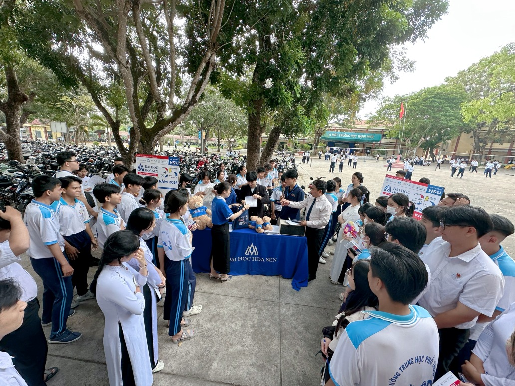 Từ ngày 09/03 đến 13/03, Trường Đại học Hoa Sen (HSU) tiếp tục hành trình tư vấn hướng nghiệp năm 2026 tại các trường THPT thuộc hai tỉnh Vĩnh Long và Đồng Tháp. Chương trình mang đến cơ hội để học sinh tiếp cận thông tin chính xác về ngành học, chương trình đào tạo và định hướng nghề nghiệp, đồng thời tạo không gian giao lưu gần gũi giữa sinh viên Hoa Sen và các bạn học sinh cuối cấp.