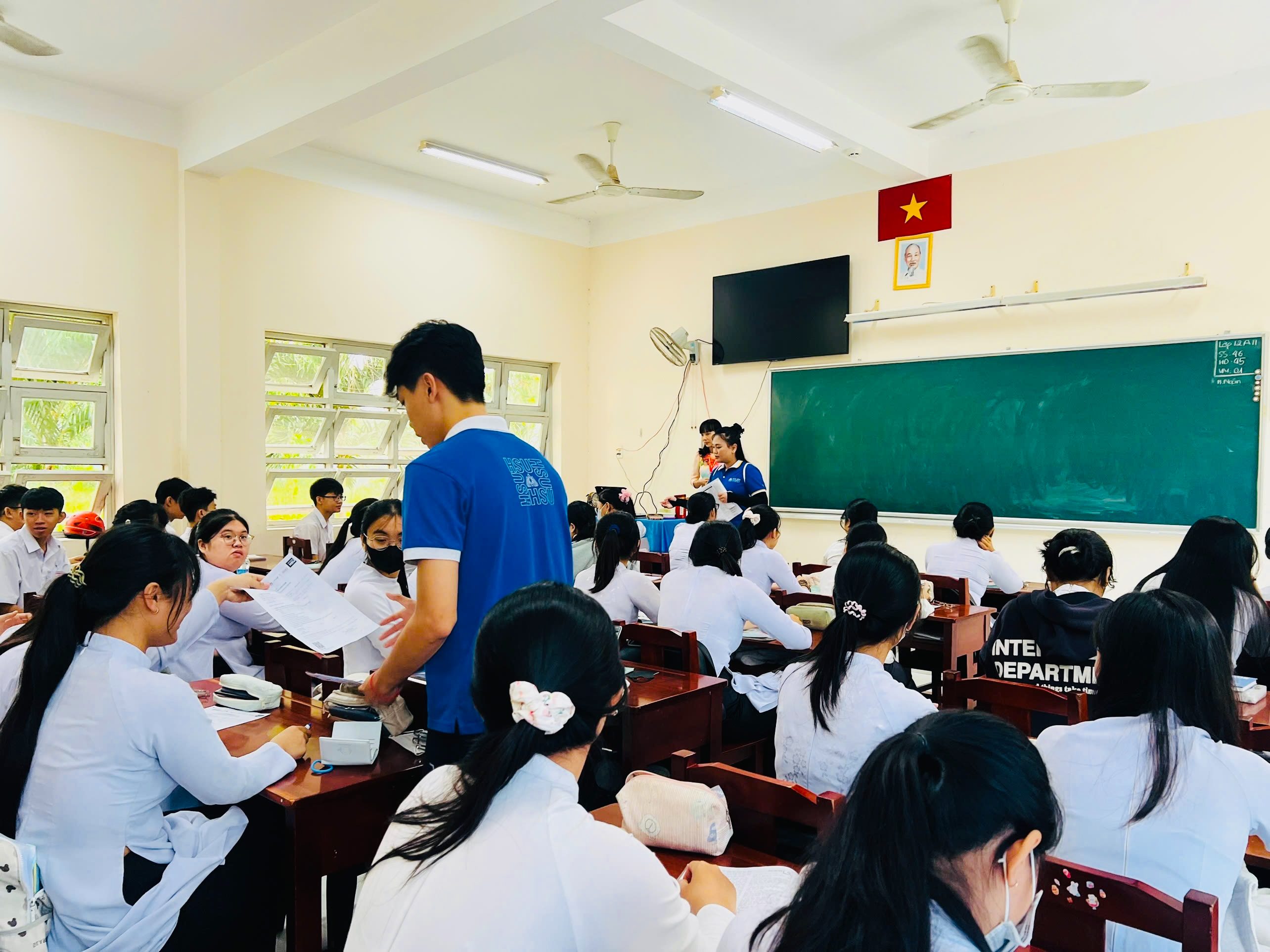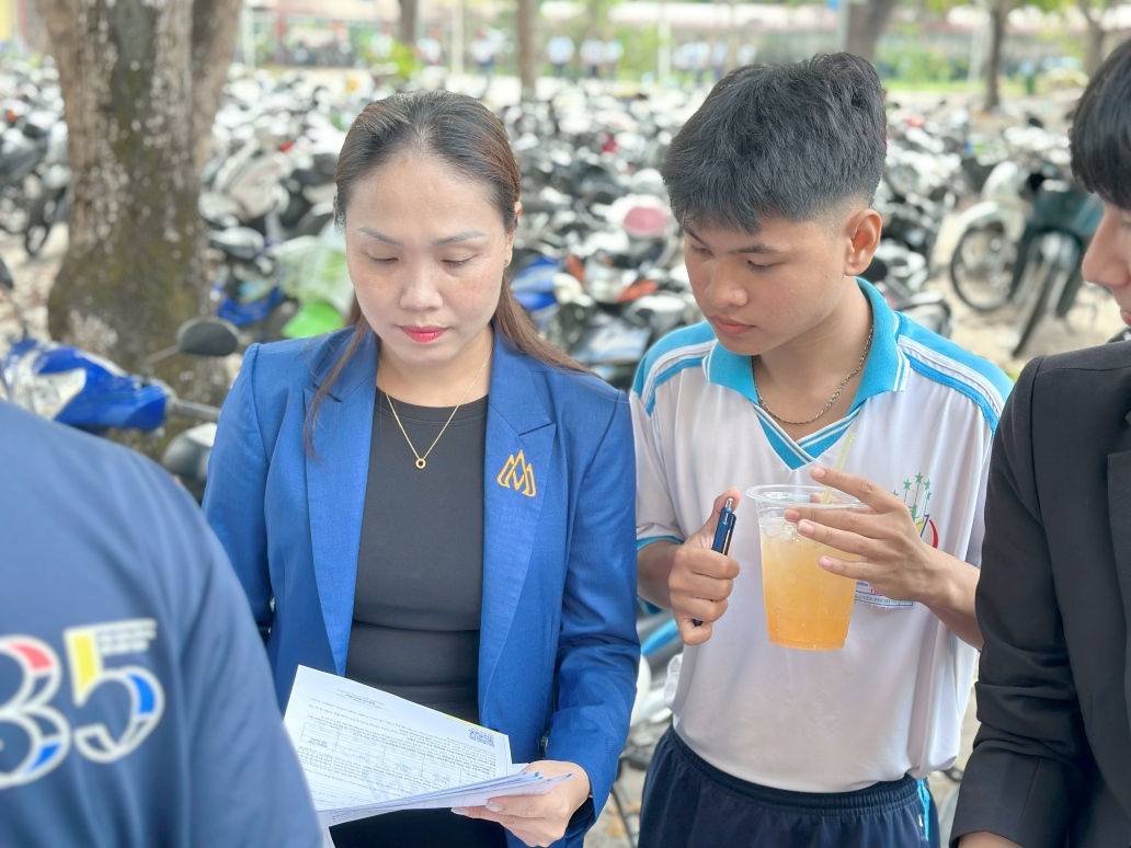 Trong chương trình tư vấn, không khí tại các trường THPT ở Vĩnh Long và Đồng Tháp luôn sôi động với nhiều câu hỏi, trao đổi và tương tác giữa học sinh với đội ngũ chuyên viên tư vấn. Những cuộc trò chuyện ngắn trong giờ ra chơi, những câu hỏi trực tiếp tại lớp học đã tạo nên một không gian kết nối tự nhiên và gần gũi.