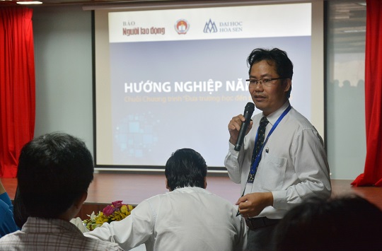 ThS Đỗ Sỹ Cường, Phó hiệu trưởng trường ĐH Hoa Sen chia sẻ tầm quan trọng của công tác hướng nghiệp.