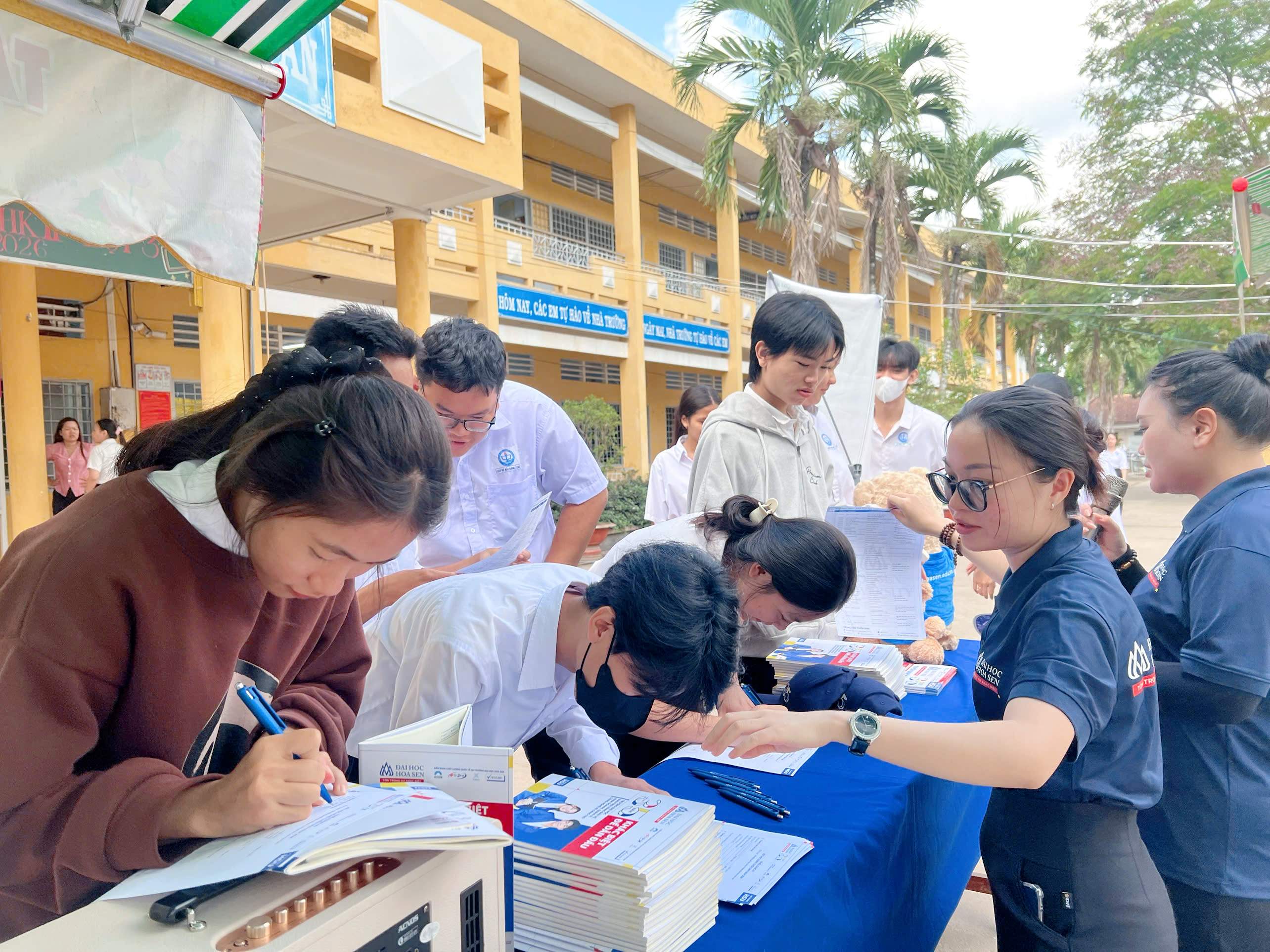 Tại mỗi điểm trường, đội ngũ Trung tâm Tuyển sinh HSU mang đến những thông tin rõ ràng, dễ hiểu và sát thực tế, giúp học sinh từng bước định hình lựa chọn phù hợp với bản thân và chủ động hơn cho hành trình phía trước.
