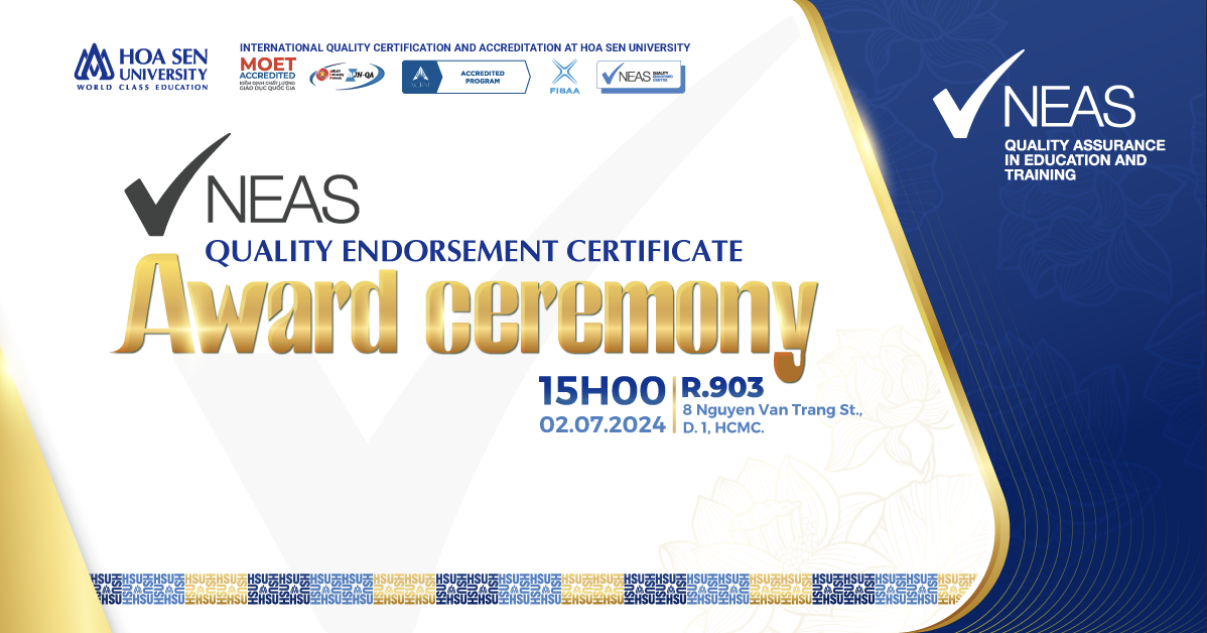Hoa Sen University (HSU) again achieved NEAS certification for its General English program on July 2, 2024. Notably, HSU remains the first and only university in Vietnam to achieve this prestigious accreditation. Hoa Sen University (HSU) again achieved NEAS certification for its General English program on July 2, 2024. Notably, HSU remains the first and only university in Vietnam to achieve this prestigious accreditation. NEAS, a leading global authority in English language teaching quality assessment, awarded HSU this endorsement. With over 200 members across Australia, the Asia-Pacific Region, and the Middle East, NEAS’s recognition underscores HSU’s commitment to excellence in...