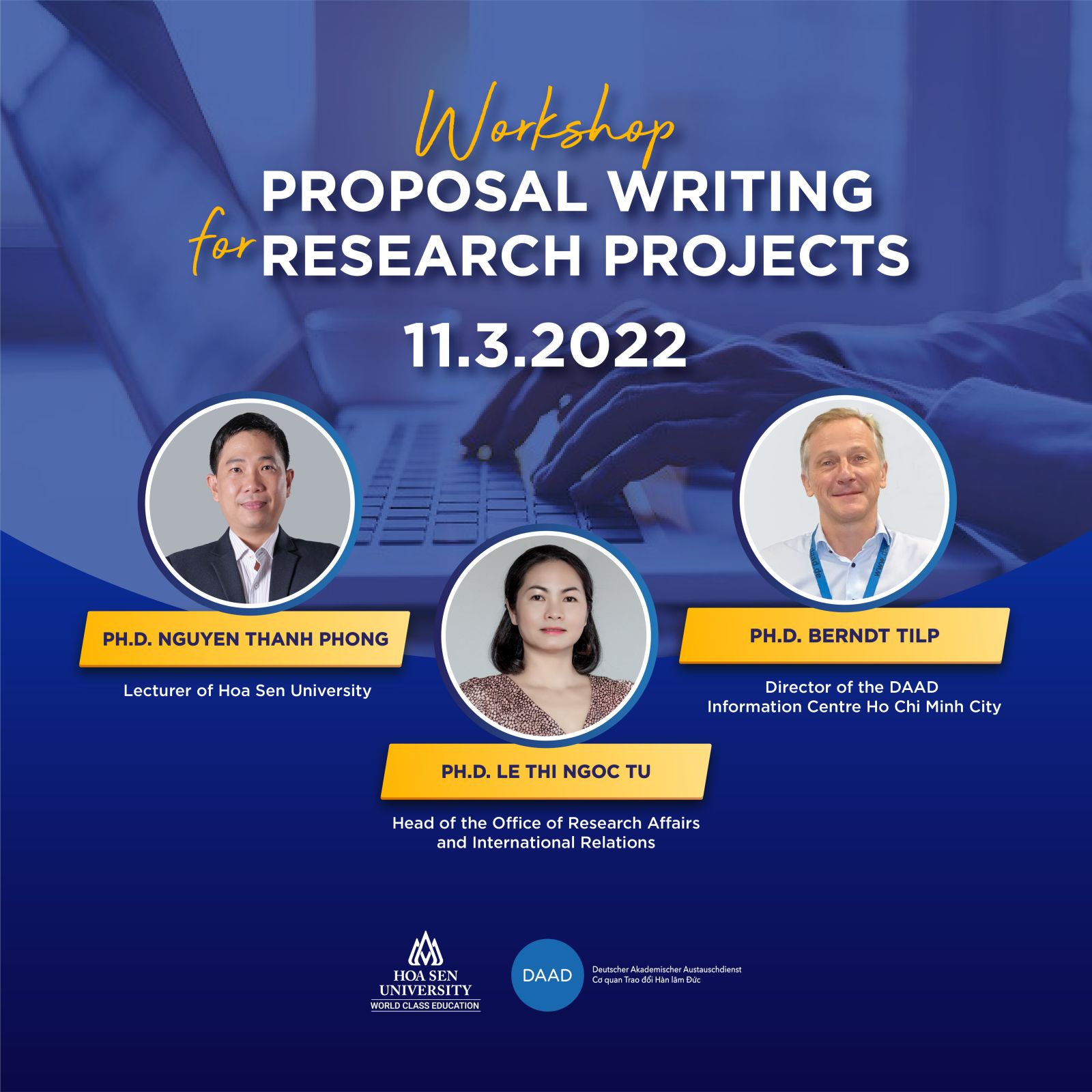 Ngày 11/3/2022, Trường Đại học Hoa Sen phối hợp cùng Trung tâm thông tin thuộc Cơ quan Trao đổi Hàn lâm Đức (DAAD) tổ chức khóa tập huấn về Phương pháp viết đề cương dự án. TS. Nguyễn Thanh Phong – trường Đại học Hoa Sen, giảng viên hướng dẫn khóa tập huấn. Khách mời tham gia khóa tập huấn có TS. Lê Thị Ngọc Tú, Trưởng Phòng Quản lý Khoa học – Hợp tác Quốc tế, trường Đại học Hoa Sen; TS. Berndt Tilp – Giám đốc Trung tâm thông tin – DAAD tại TP.HCM. Đối tượng của khóa...