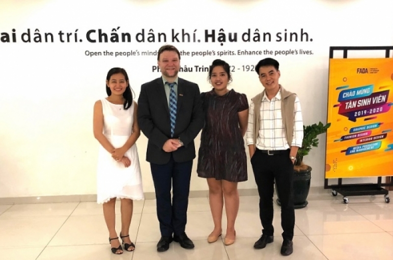 Ngày 8/11/2019, GS Franco Gandolfi, trưởng khoa Kinh tế và Quản trị, KTS.Từ Phú Đức, Quyền Trưởng Khoa Thiết kế Nghệ thuật và TS.Giang Thúy Minh, phụ trách các hoạt động hợp tác quốc tế đã đón tiếp Đại diện của Đại học Adelaide đến thăm và làm việc với Nhà trường lần thứ 2 để thảo luận về các chủ đề hợp tác Đào tạo. Phía đối tác bao gồm cô Kimberly Salafia, phụ trách hợp tác quốc tế và GS Mark Carroll, Phó trưởng Khoa Nghệ thuật. Hai bên đã nhất trí tiến hành nhiều hoạt động hợp...