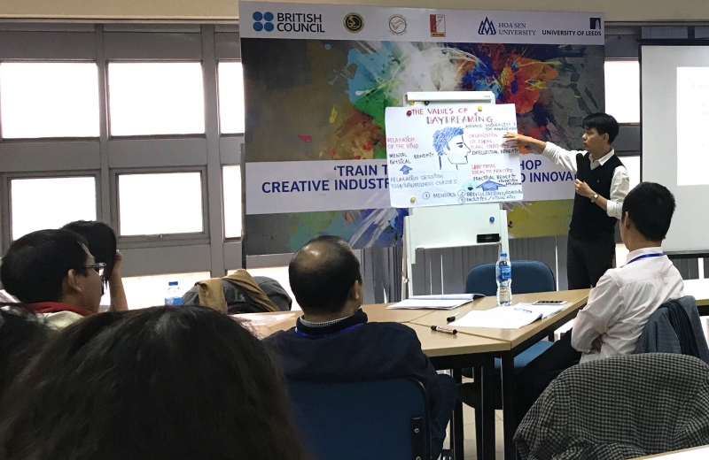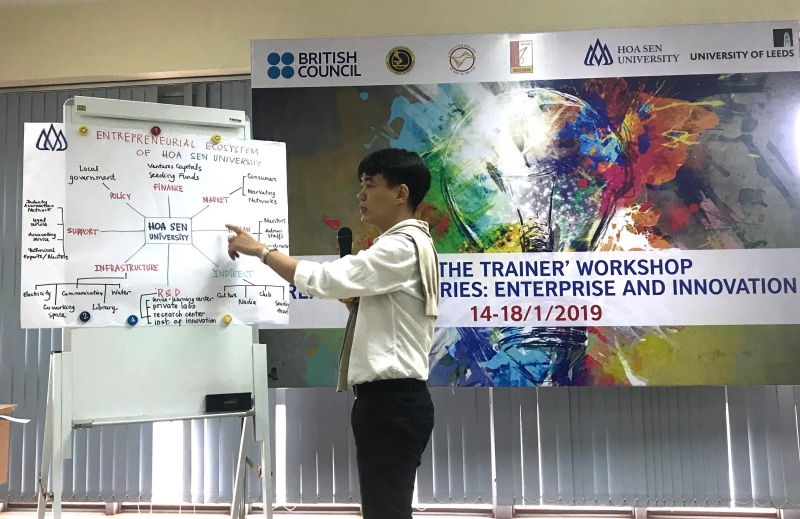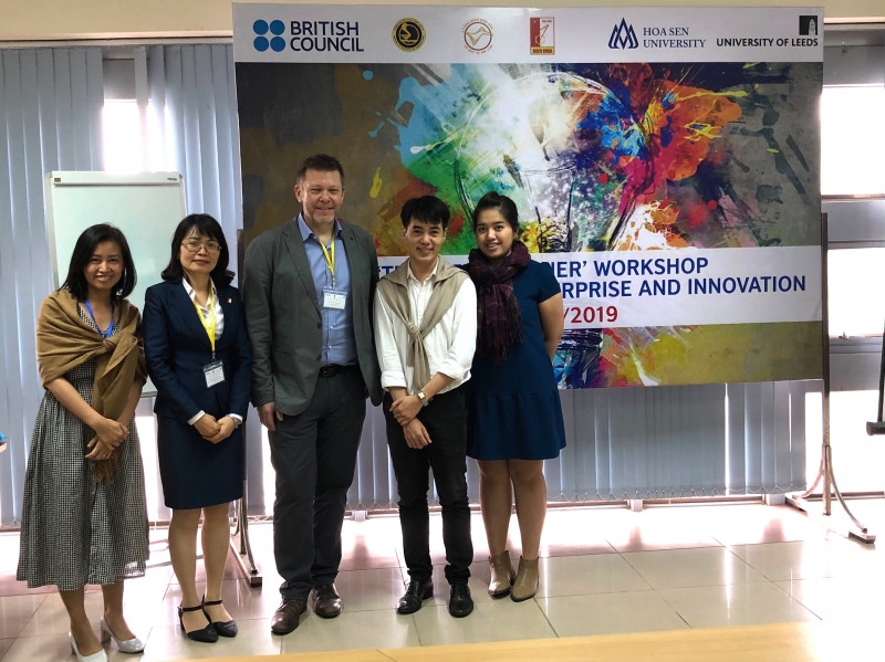 Dự án “Innovation and enterprise mentoring network to support the role of universities in the Vietnamese creative industry” do Đại học Hoa Sen thực hiện cùng University of Leeds (UK), Đại học Bách khoa Hà Nội và Đại học Giao thông Vận tải đã chính thức khởi động ngày 14/01/2019 bằng workshop “Enterprise & Innovation” tại Đại học Bách khoa Hà Nội. Workshop được điều phối bởi TS. Stephen Dobson của University of Leeds.