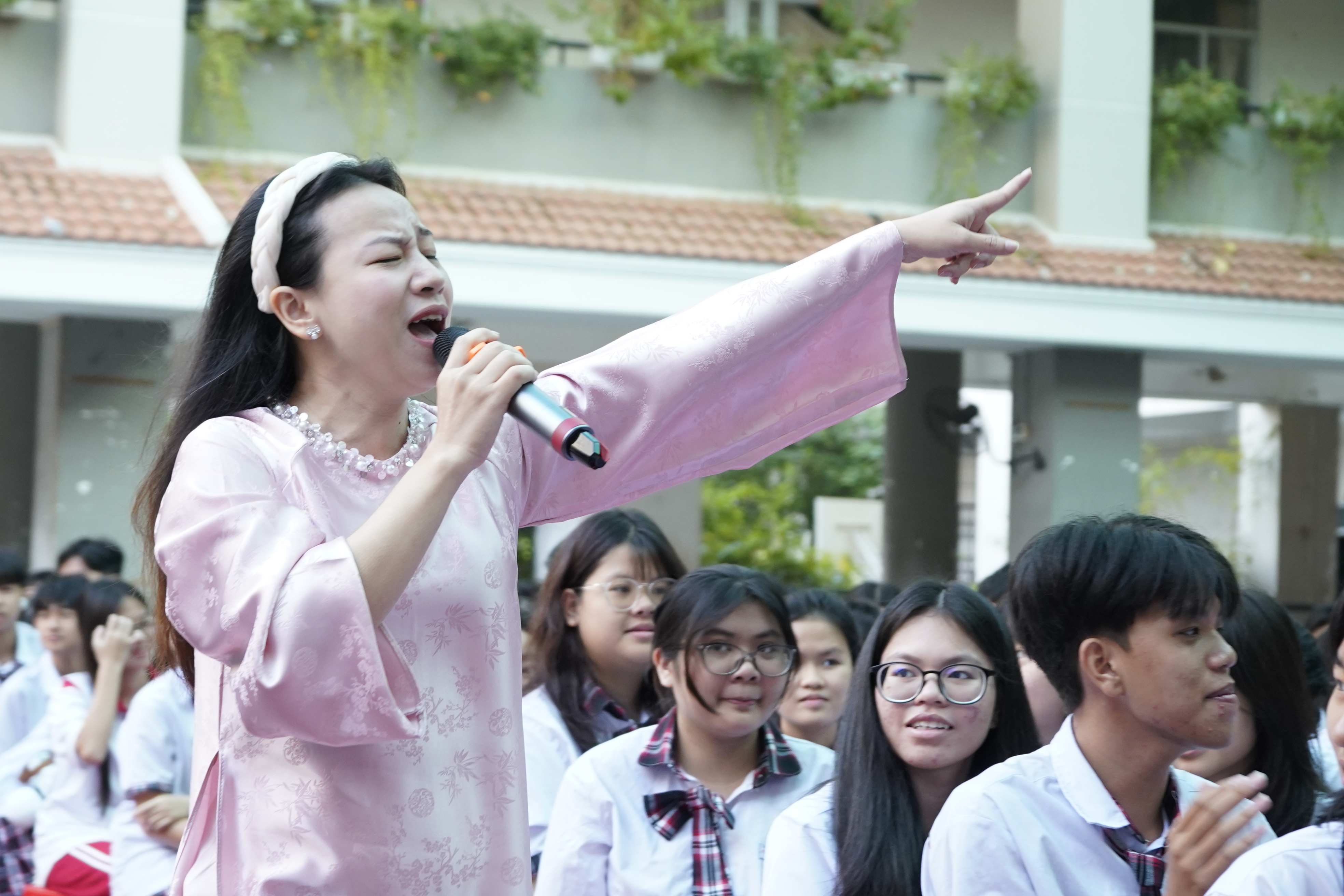 Các nhạc cụ truyền thống Việt Nam lần lượt được giới thiệu, kết hợp cùng trích đoạn cải lương, giúp học sinh THPT Nguyễn Hữu Thọ cảm nhận rõ hơn chiều sâu của nghệ thuật dân tộc. Kết thúc phần biểu diễn, phần giao lưu cùng Diễn giả văn hóa Hồ Nhựt Quang tạo ra không gian đối thoại cởi mở. Các em học sinh được lắng nghe và chia sẻ suy nghĩ của mình về sự tri ân, về vai trò của thầy cô trong hành trình trưởng thành.