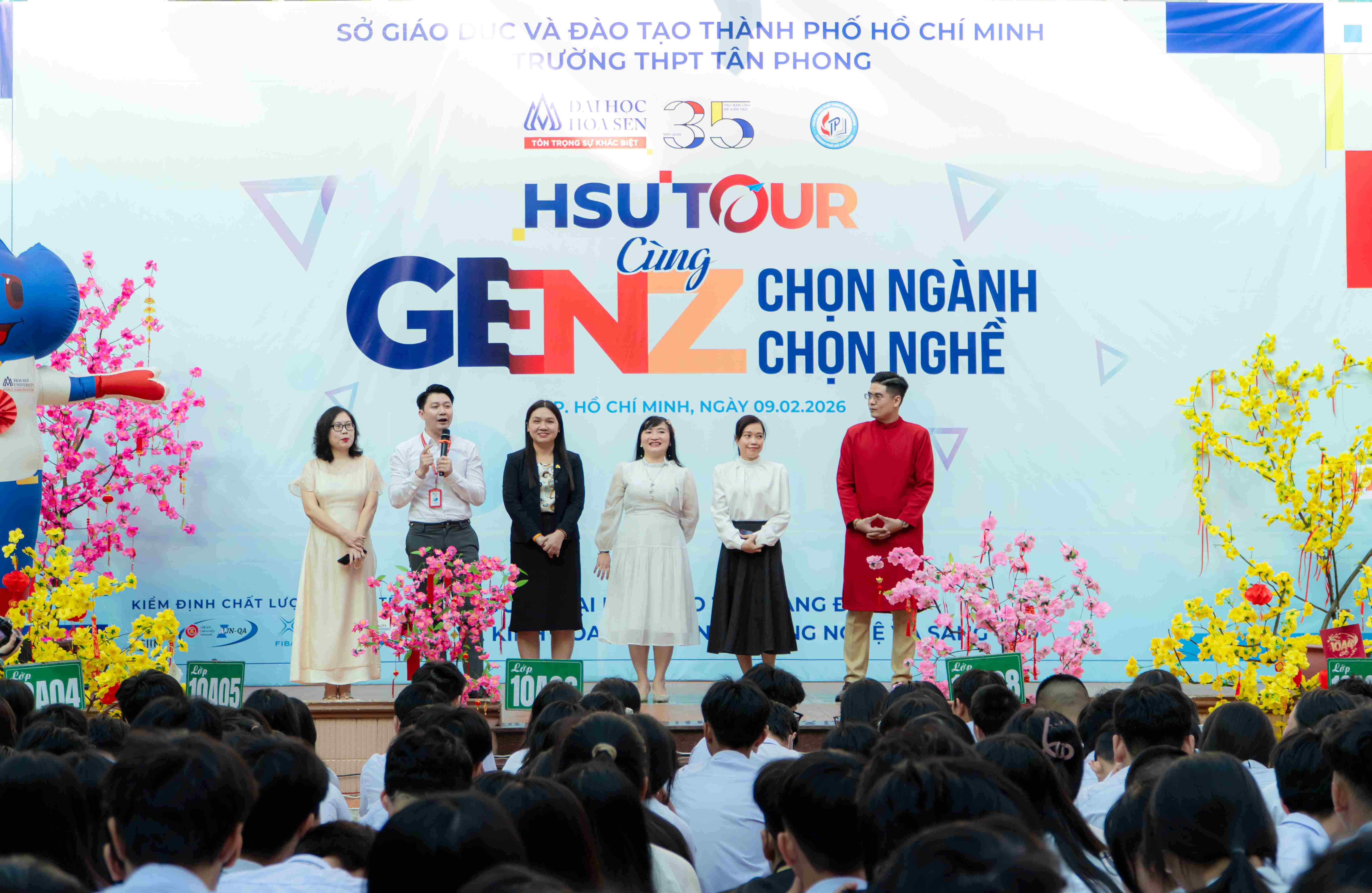 Ngày 09/2/2026, chương trình HSU Tour chủ đề “Cùng GenZ chọn ngành – chọn nghề” đã diễn ra tại Trường THPT Tân Phong, mang đến cho học sinh một buổi sáng giàu cảm xúc với âm nhạc, giao lưu và trải nghiệm hướng nghiệp. Không gian sân trường rực rỡ sắc xuân, những giai điệu mùa xuân vang lên đã tạo nên bầu không khí gần gũi, ấm áp và đầy năng lượng.