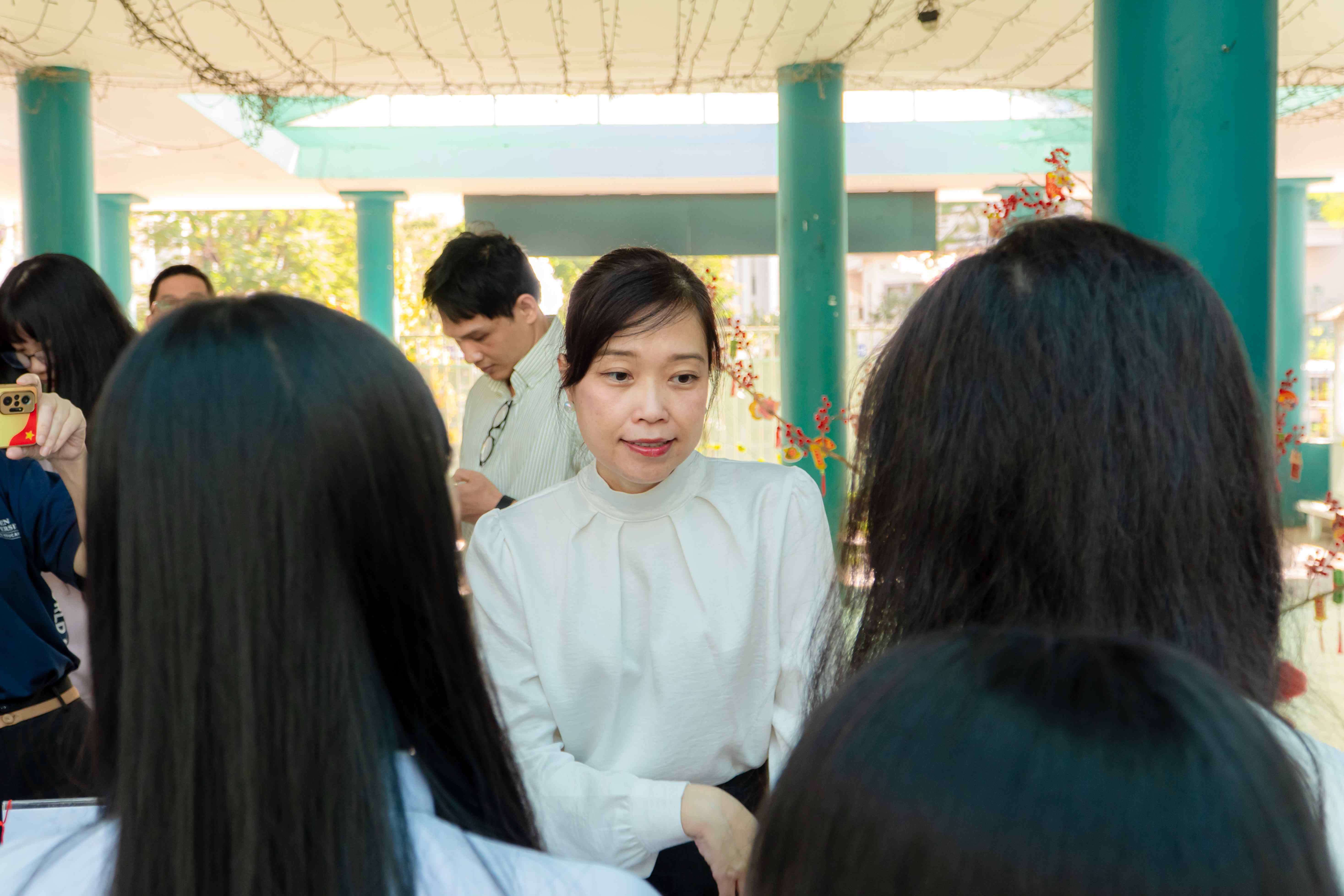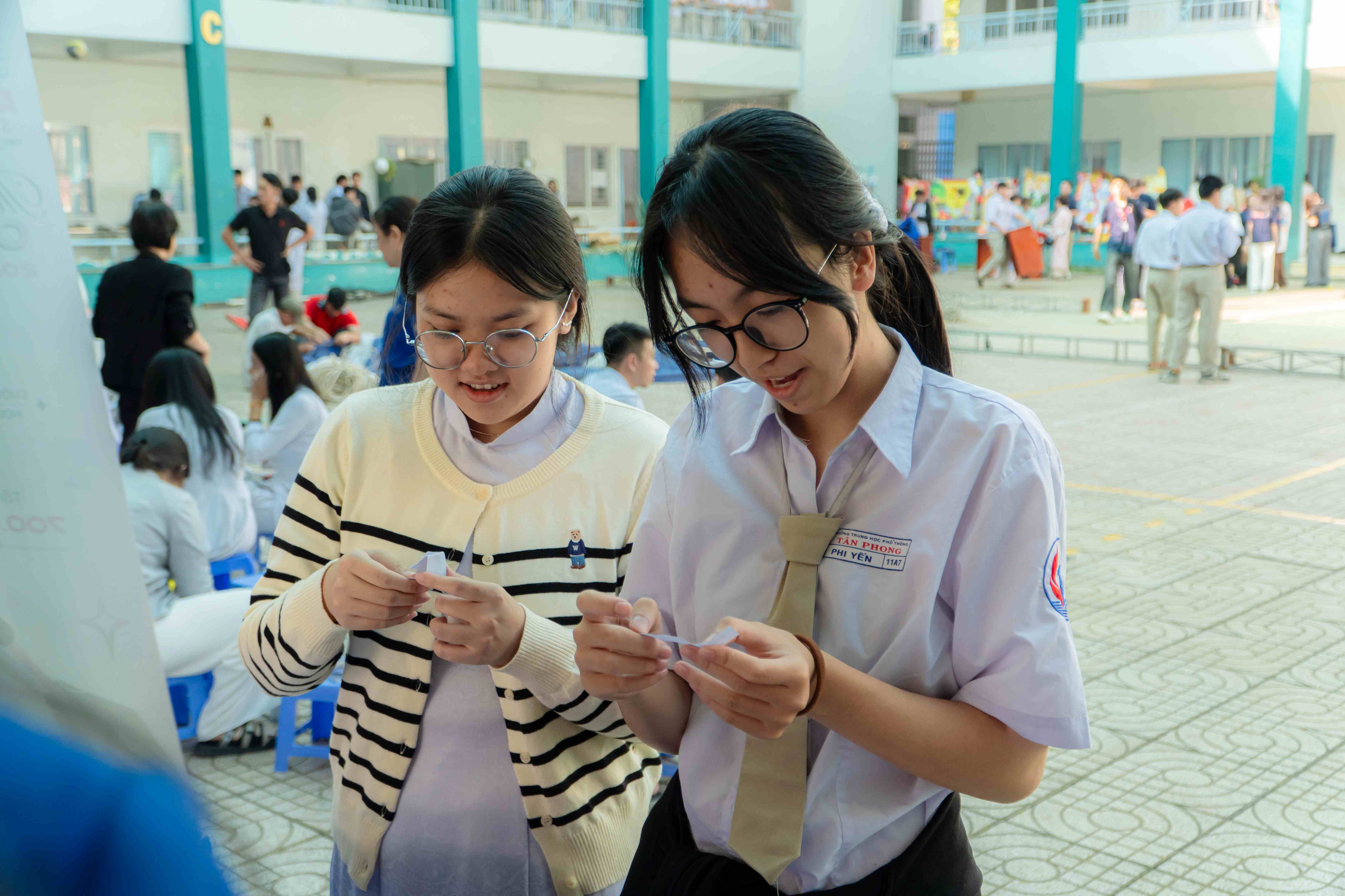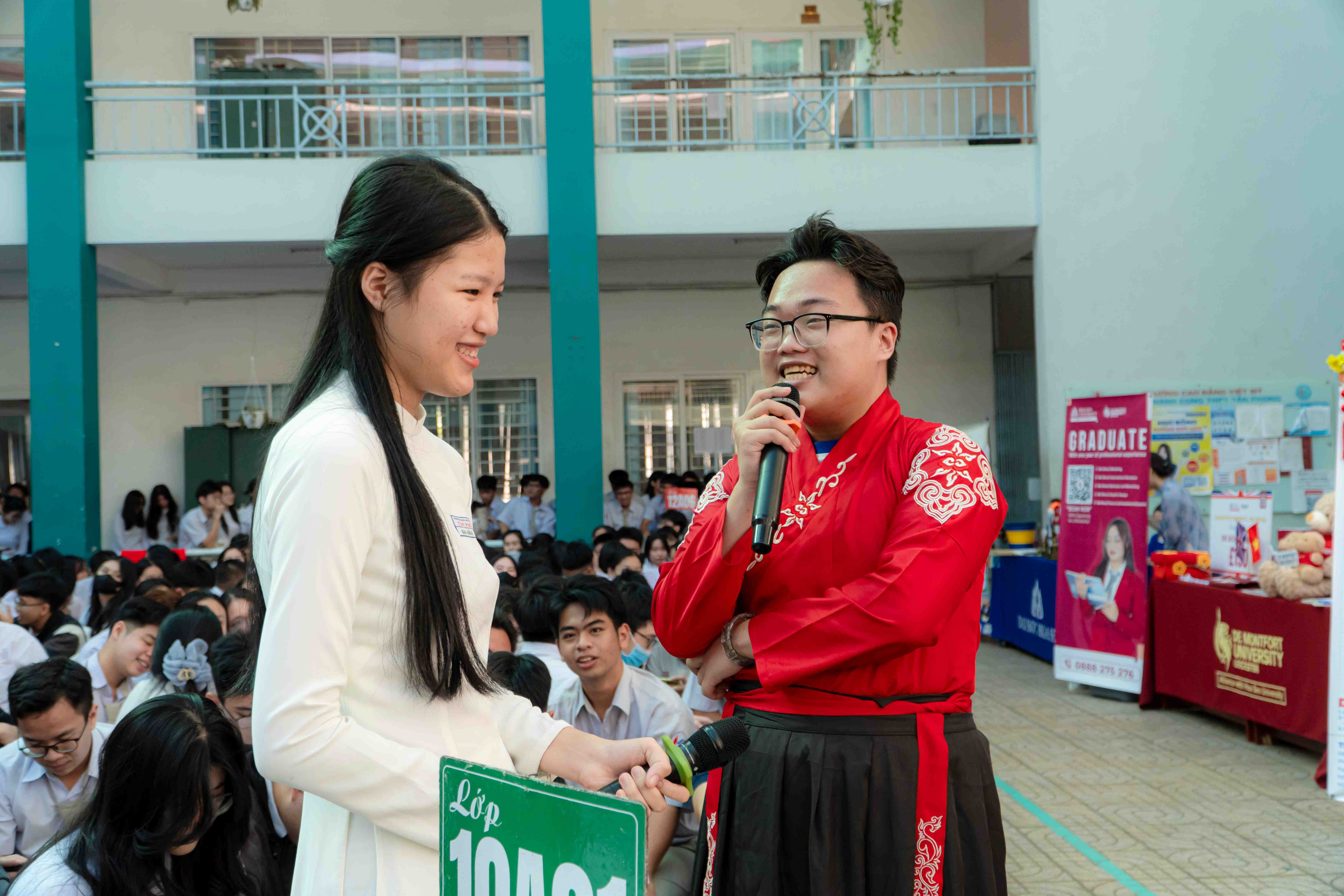 Bên cạnh đó, khu vực của Trung tâm Tuyển sinh được trang trí theo chủ đề Tết với nhiều trò chơi dân gian và hoạt động giao lưu acoustic, tạo nên không khí gần gũi, vui tươi và thu hút đông đảo học sinh tham gia.