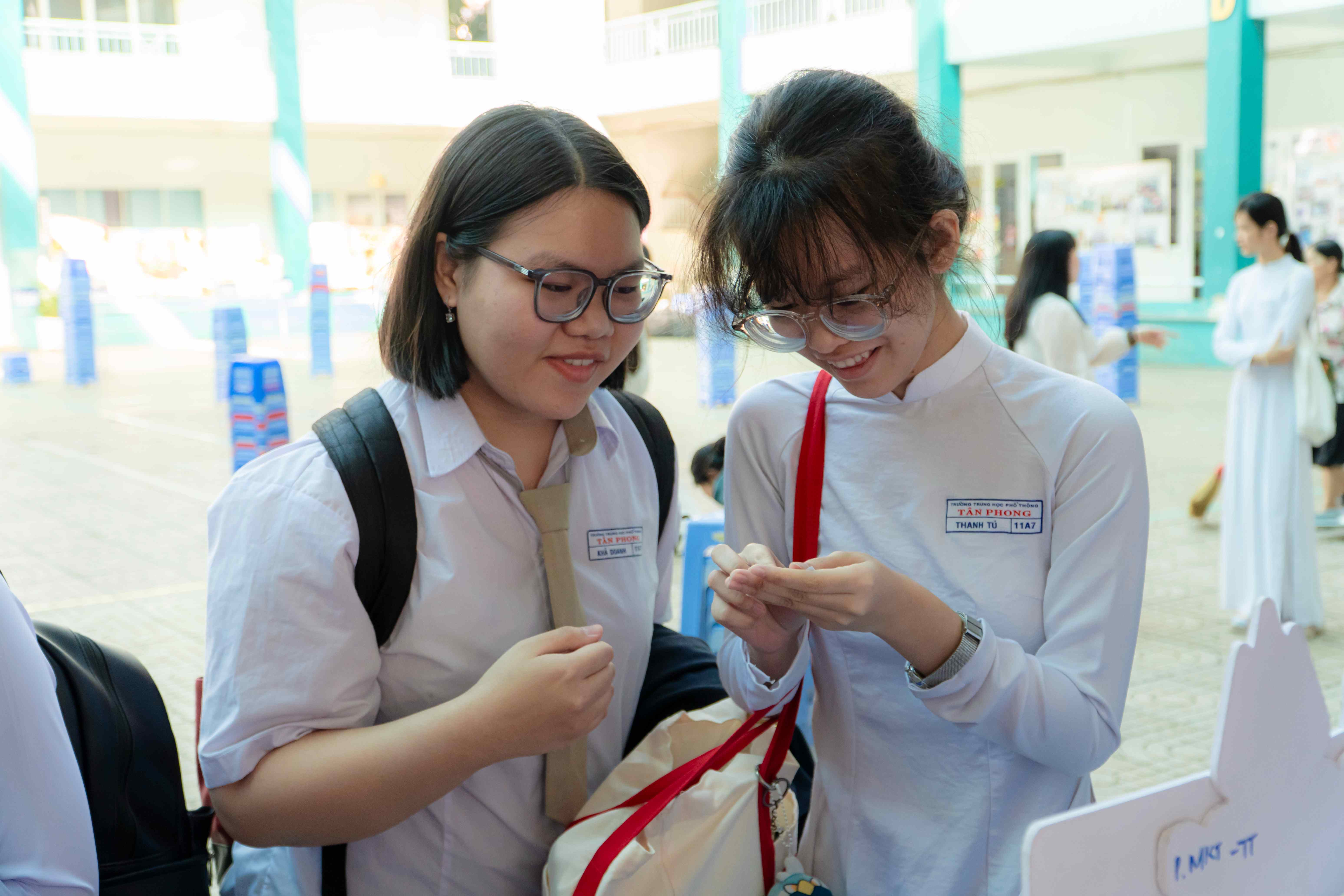Tại gian hàng của Viện Đào tạo và Hợp tác quốc tế, học sinh tham gia hoạt động rút thăm may mắn và tìm hiểu về các chương trình học tập quốc tế. Không gian mang màu sắc đa văn hóa tạo nên một điểm dừng chân thú vị trong hành trình trải nghiệm.