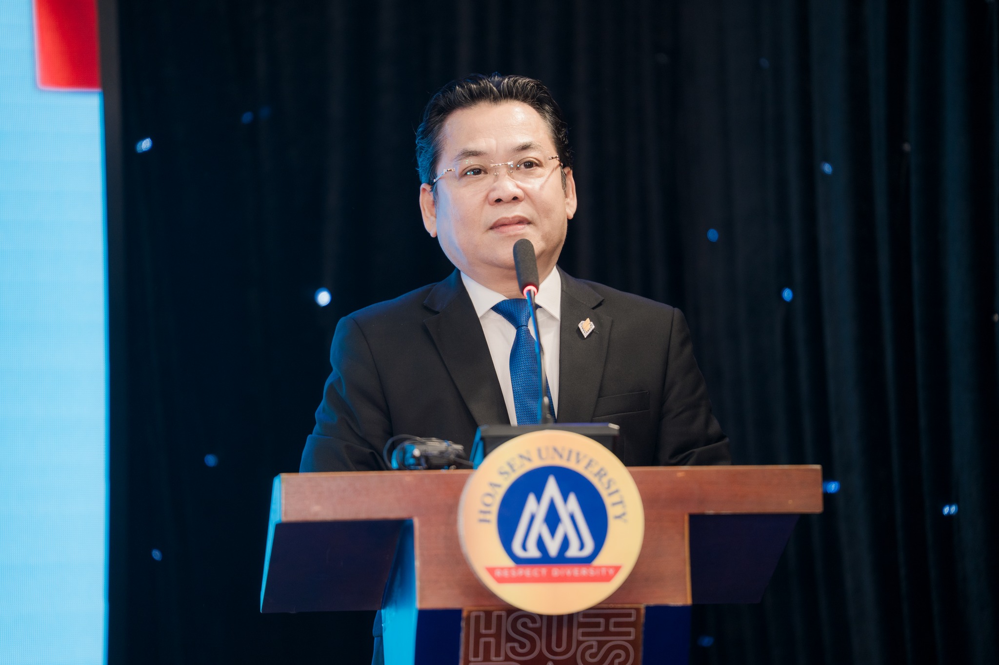 Thầy khẳng định, Nhà trường luôn hành động với tâm thế là cơ sở giáo dục đại học không chỉ truyền đạt tri thức mà còn góp phần dẫn dắt tương lai. Một trường đại học có trách nhiệm là một trường đại học nhận diện rõ được thay đổi của xã hội, những nhu cầu mới của đất nước để chủ động đào tạo nguồn lực cho các lĩnh vực đang hình thành và phát triển. Đại học Hoa Sen muốn trở thành một trong những đơn vị tiên phong trong việc đào tạo và cung cấp nguồn nhân lực mới cho lĩnh vực Công nghiệp thể thao tại Việt Nam”.