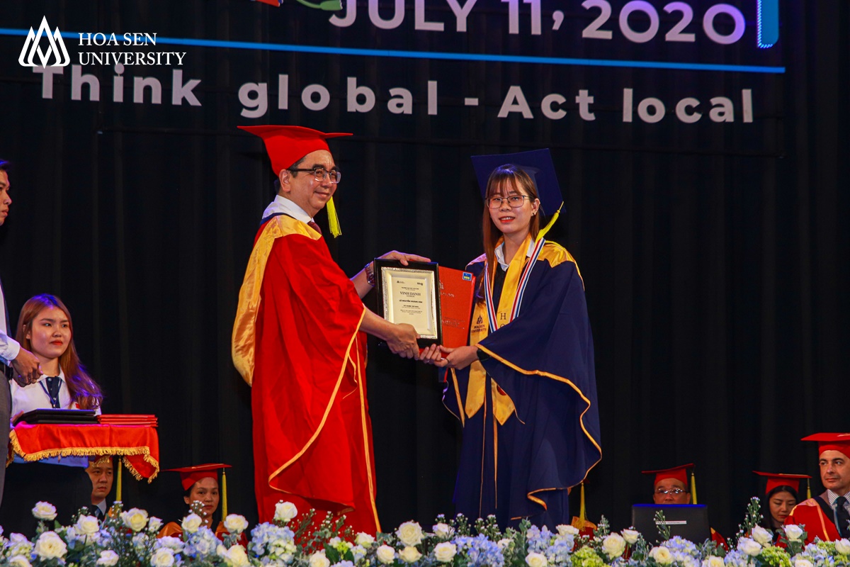 Viện sĩ, PGS TS Nguyễn Ngọc Điện – Hiệu trưởng trường Đại học Hoa Sen trao bằng cho tân khoa.