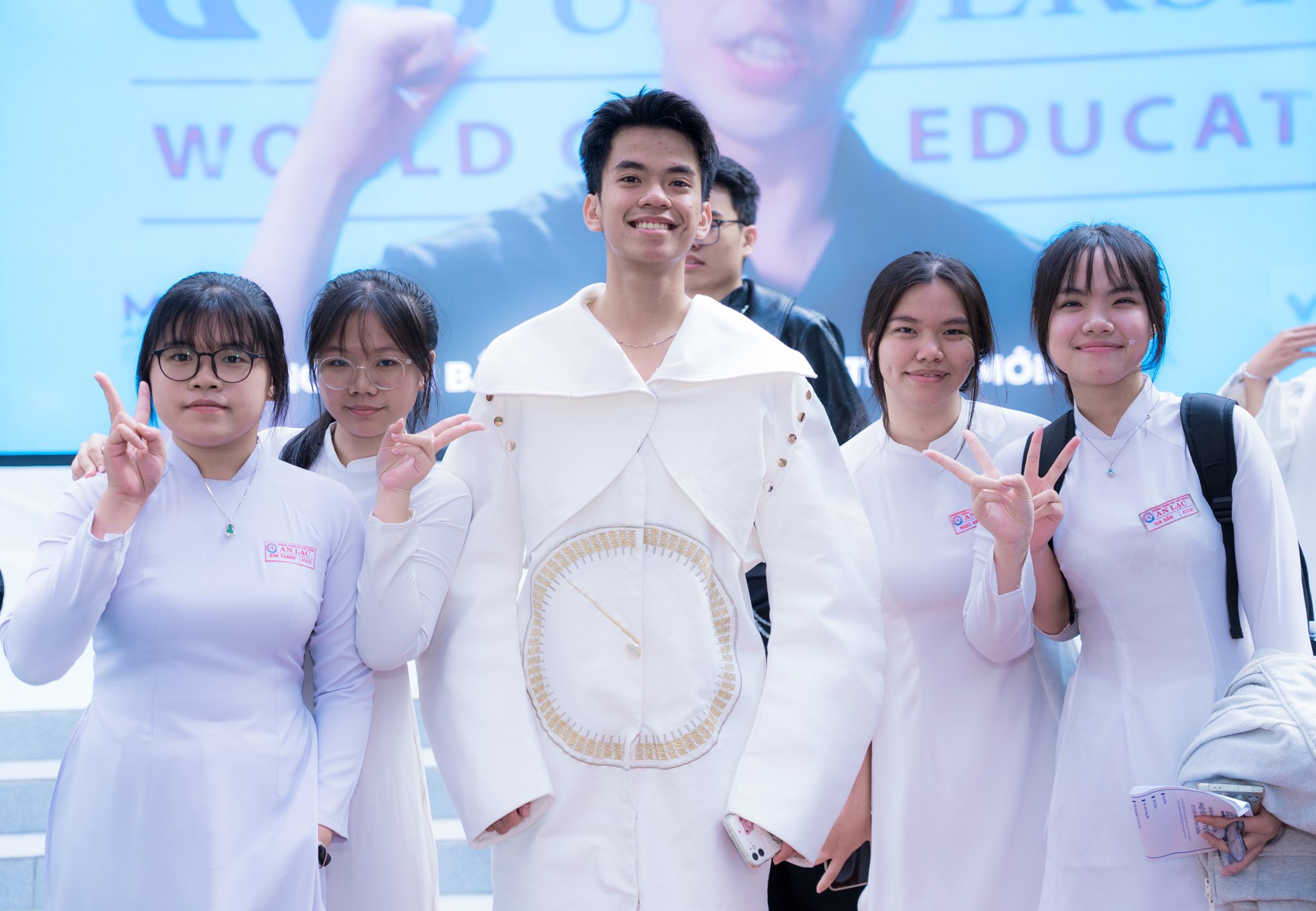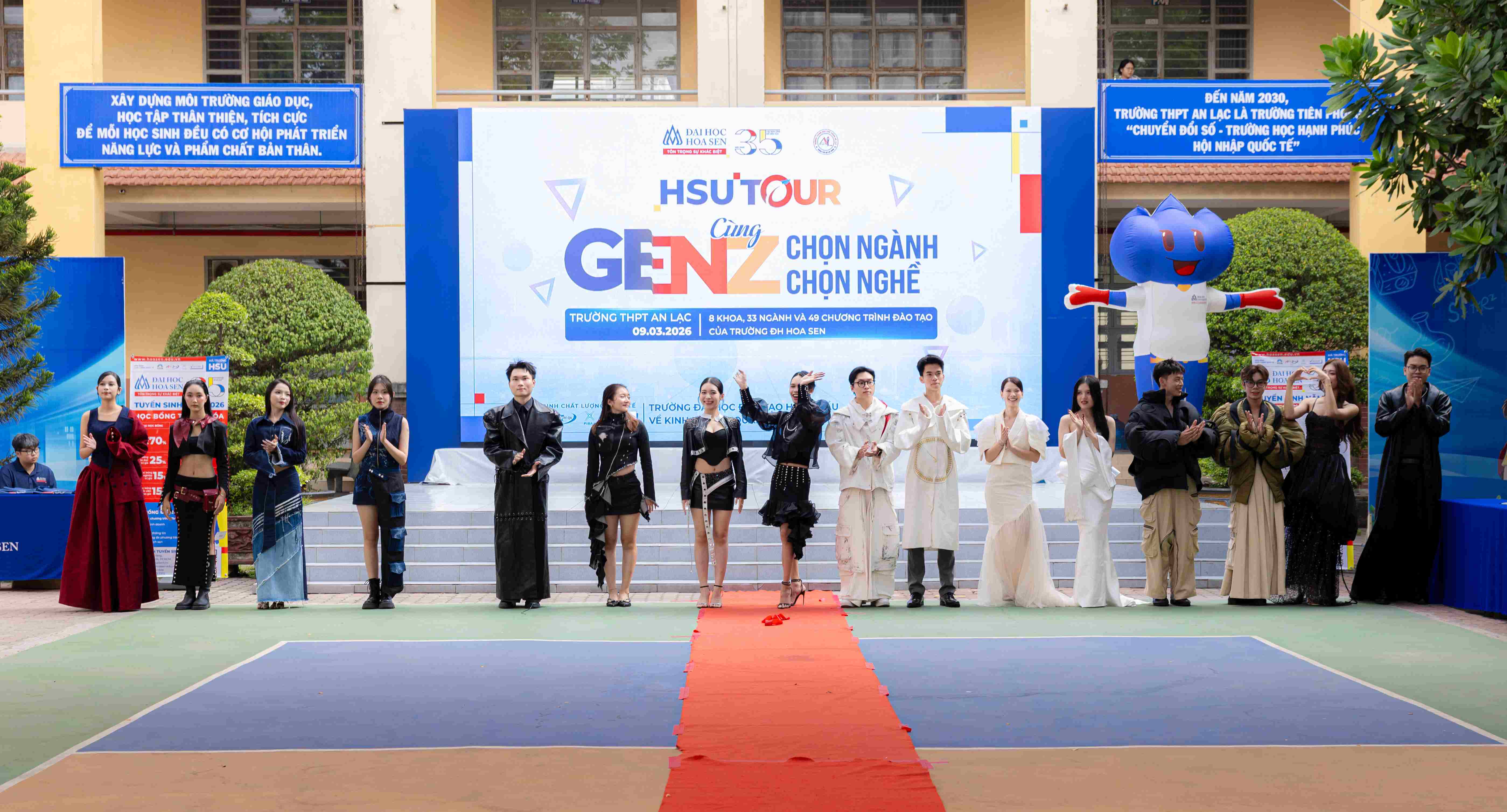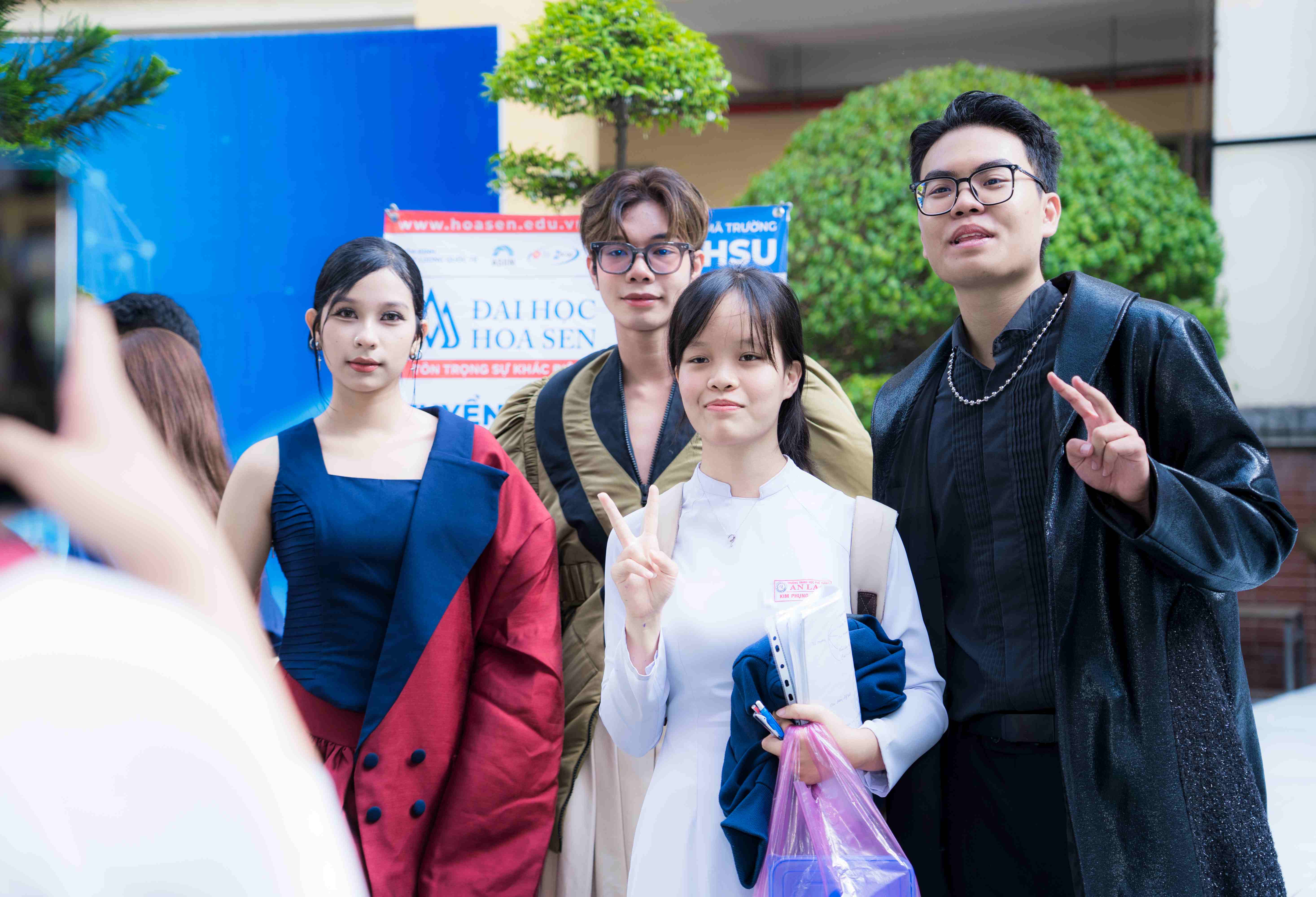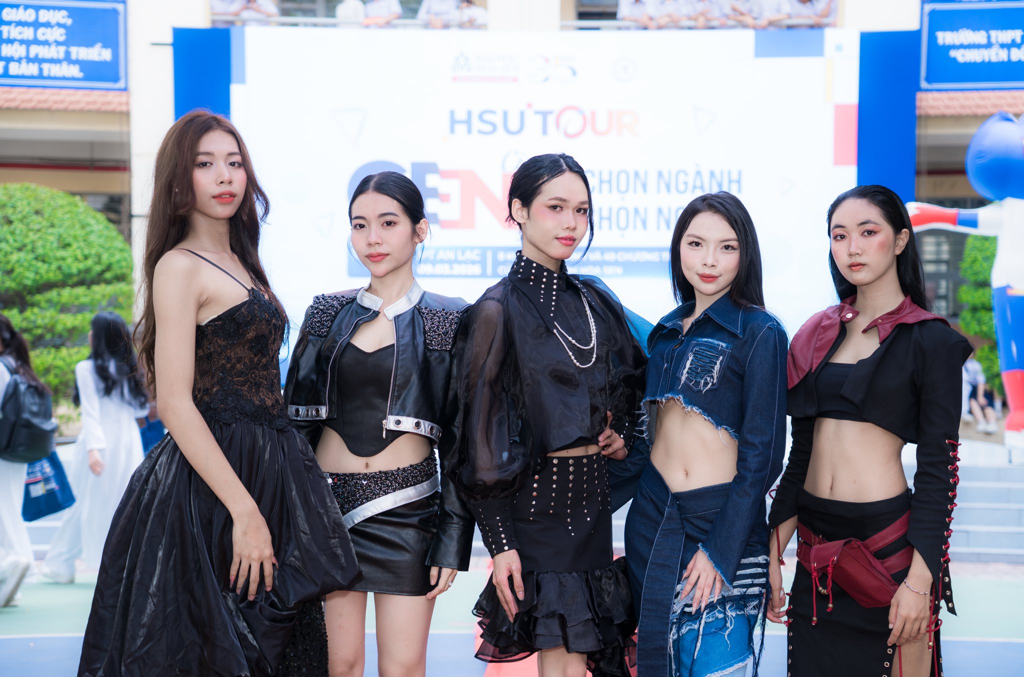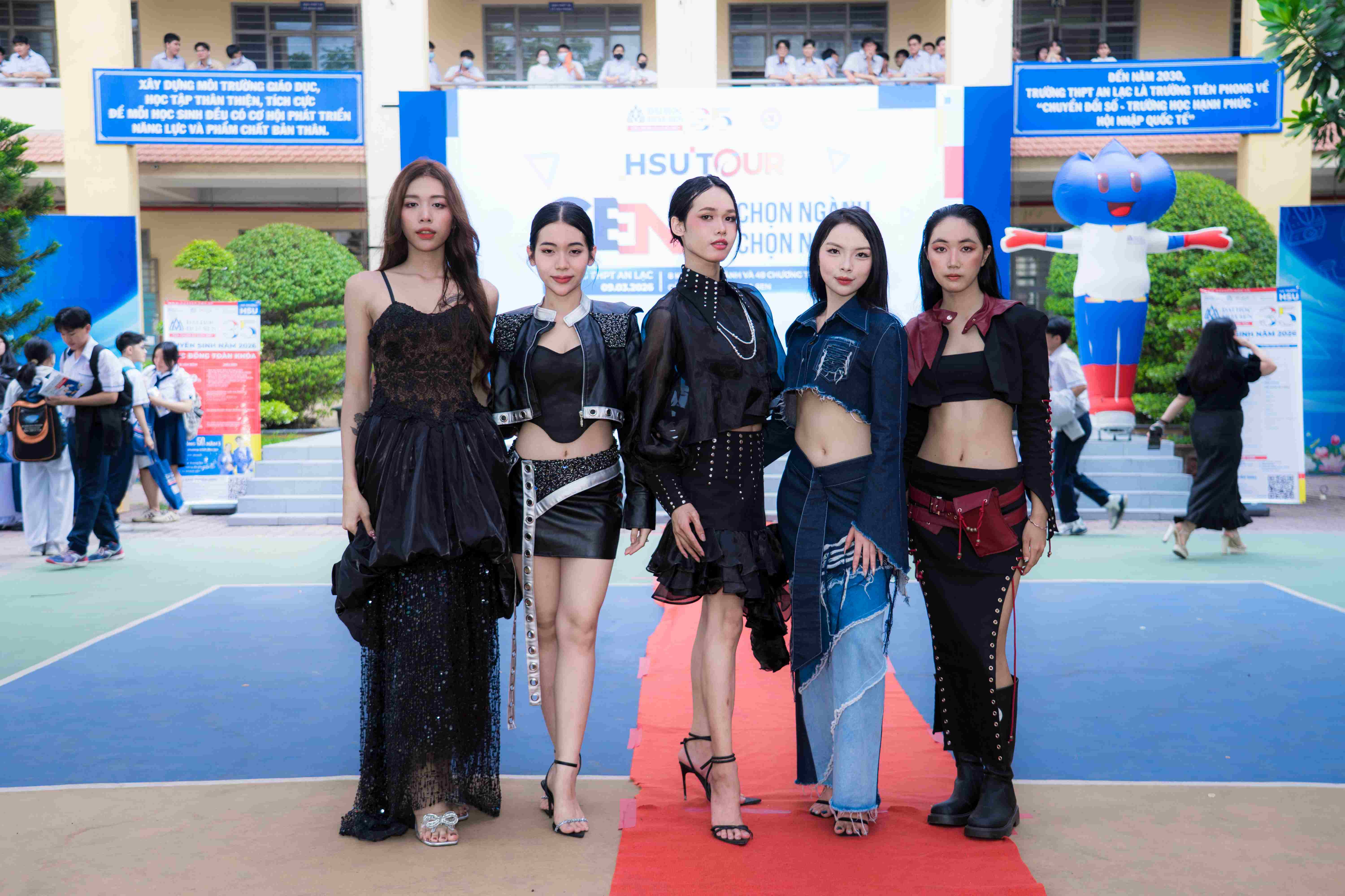 Học sinh THPT An Lạc cũng đặc biệt thích thú khi được khám phá các thiết kế thời trang do sinh viên ngành Thiết kế thời trang, Khoa Thiết kế – Nghệ thuật thực hiện. Trong khuôn khổ chương trình, Mini Fashion Show mang đến 15 thiết kế ấn tượng từ chính các “designer tương lai” của HSU. Những bộ trang phục mang phong cách trẻ trung, phá cách và giàu tính sáng tạo nhanh chóng thu hút sự chú ý của học sinh.