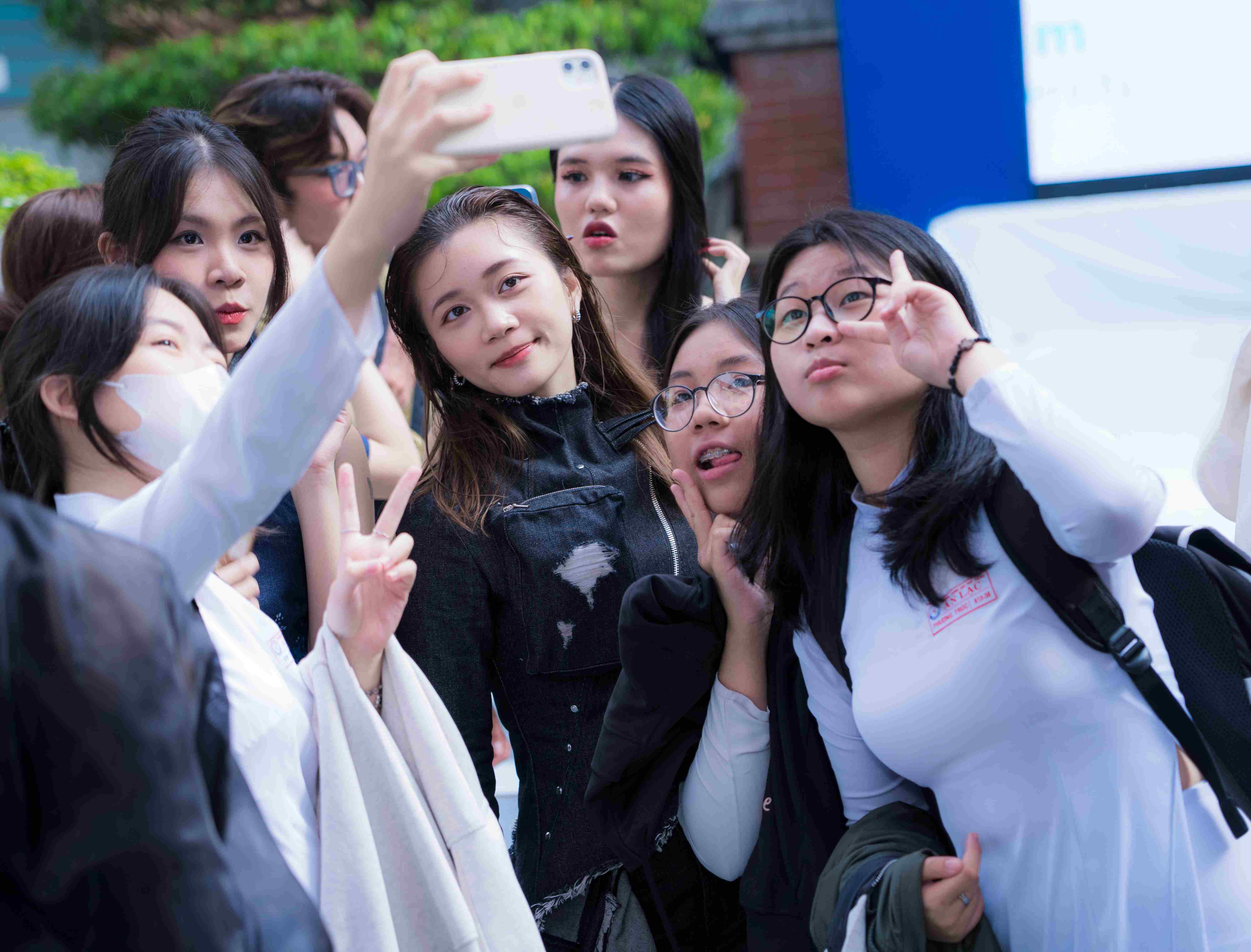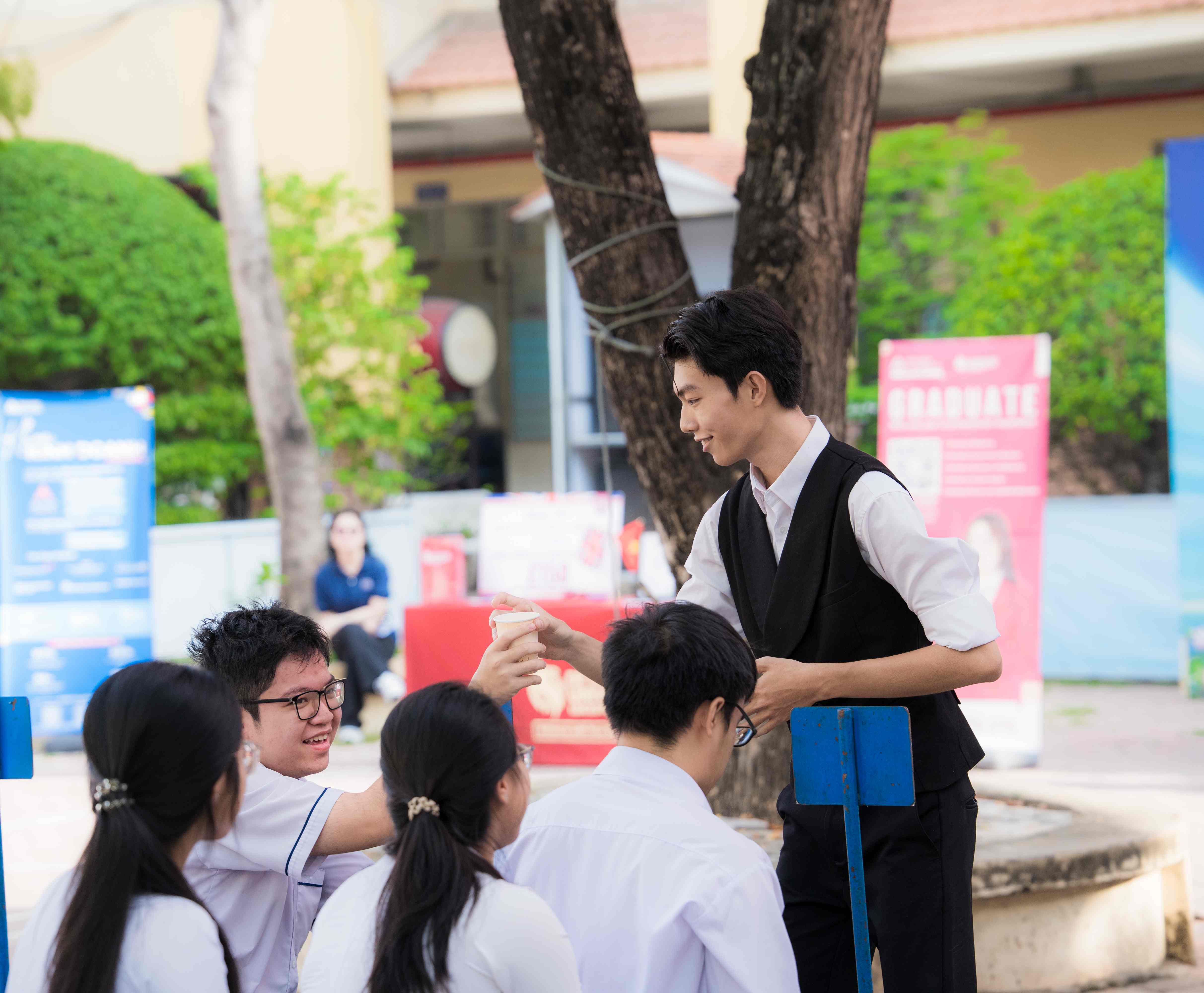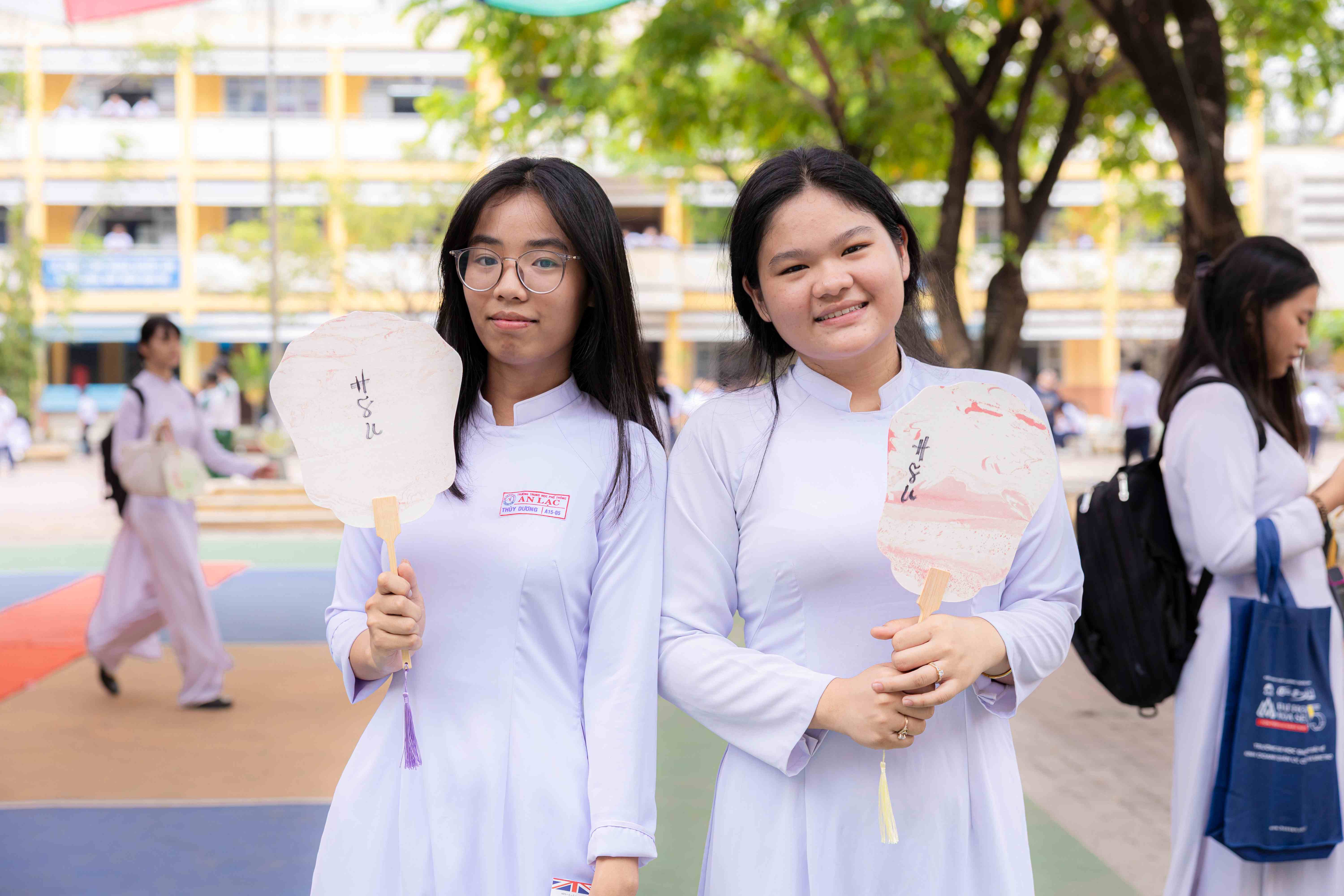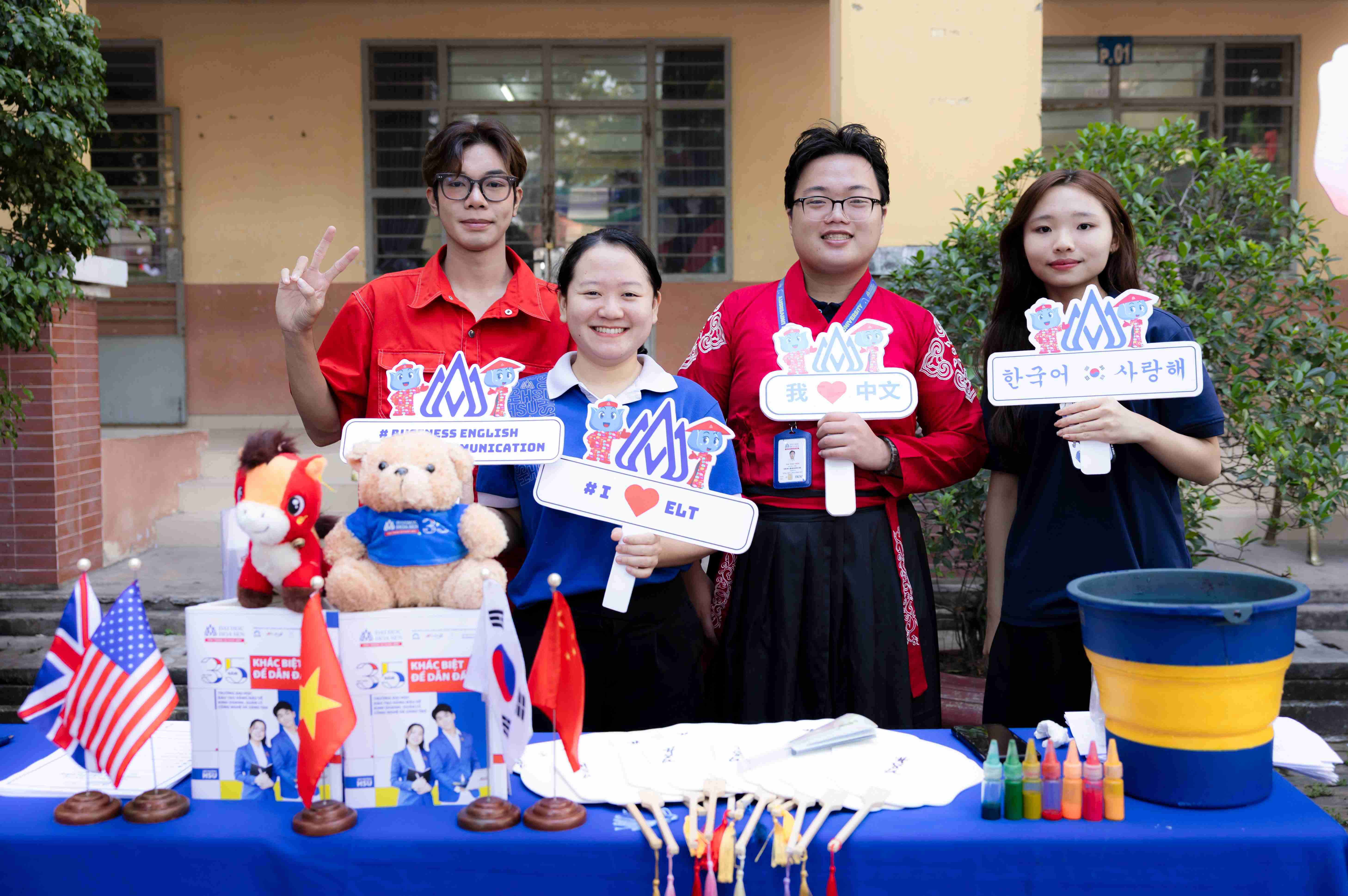 Không khí chương trình trở nên gần gũi hơn khi sinh viên HSU giao lưu với học sinh bằng nhiều ngôn ngữ như tiếng Anh, tiếng Trung, tiếng Nhật, tiếng Hàn… Hoạt động nhỏ nhưng tạo nên sự thích thú cho các bạn học sinh, đồng thời thể hiện không khí của môi trường học tập theo tiêu chuẩn quốc tế và năng động tại HSU.