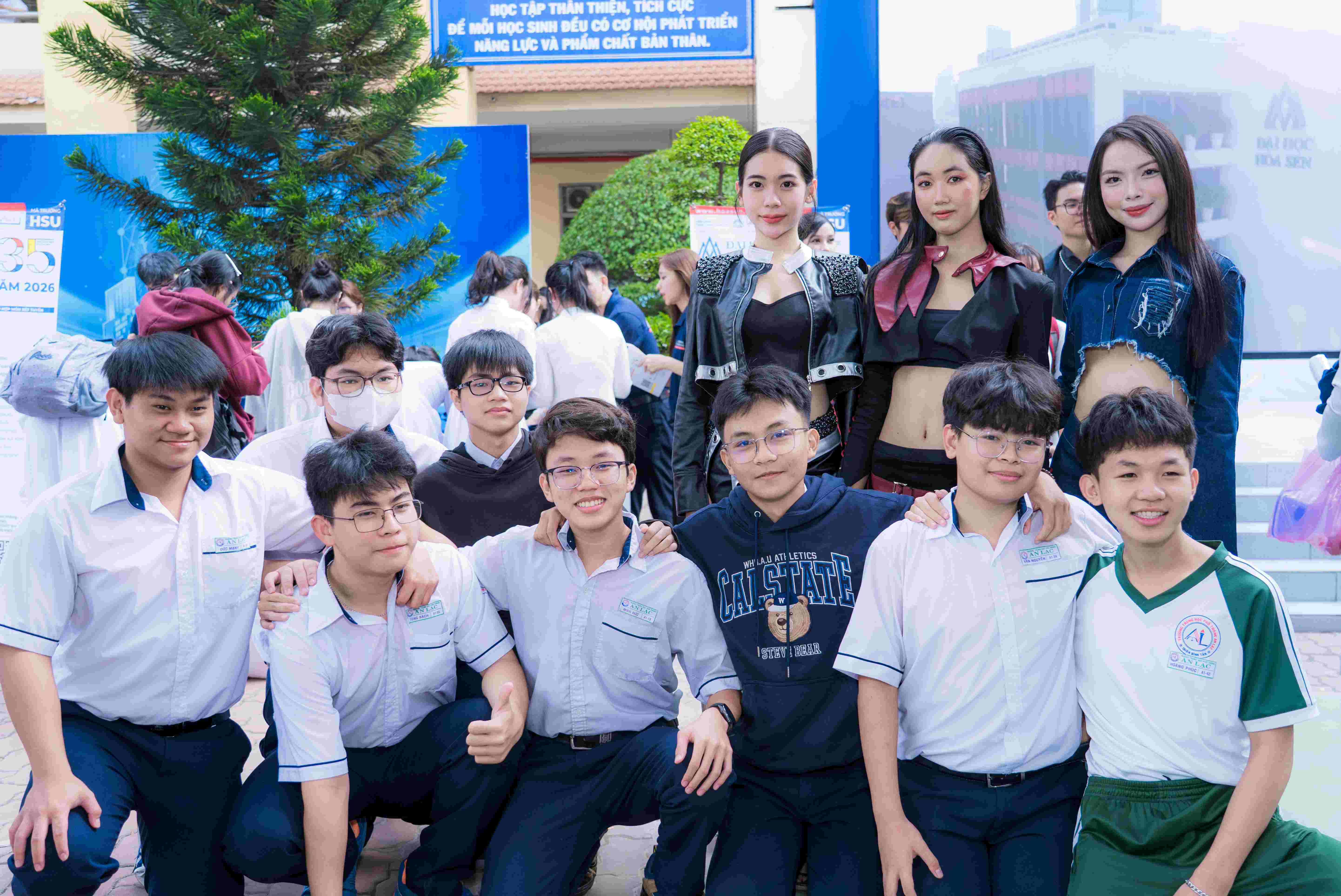 Bên cạnh các tiết mục văn nghệ, phần giao lưu giữa các bạn sinh viên Trường Đại học Hoa Sen và các em học sinh cũng nhận được nhiều sự quan tâm. Đại diện sinh viên HSU đã chia sẻ những trải nghiệm học tập, đồng thời giới thiệu về môi trường đào tạo, các ngành học và chính sách học bổng của nhà trường trong năm 2026.