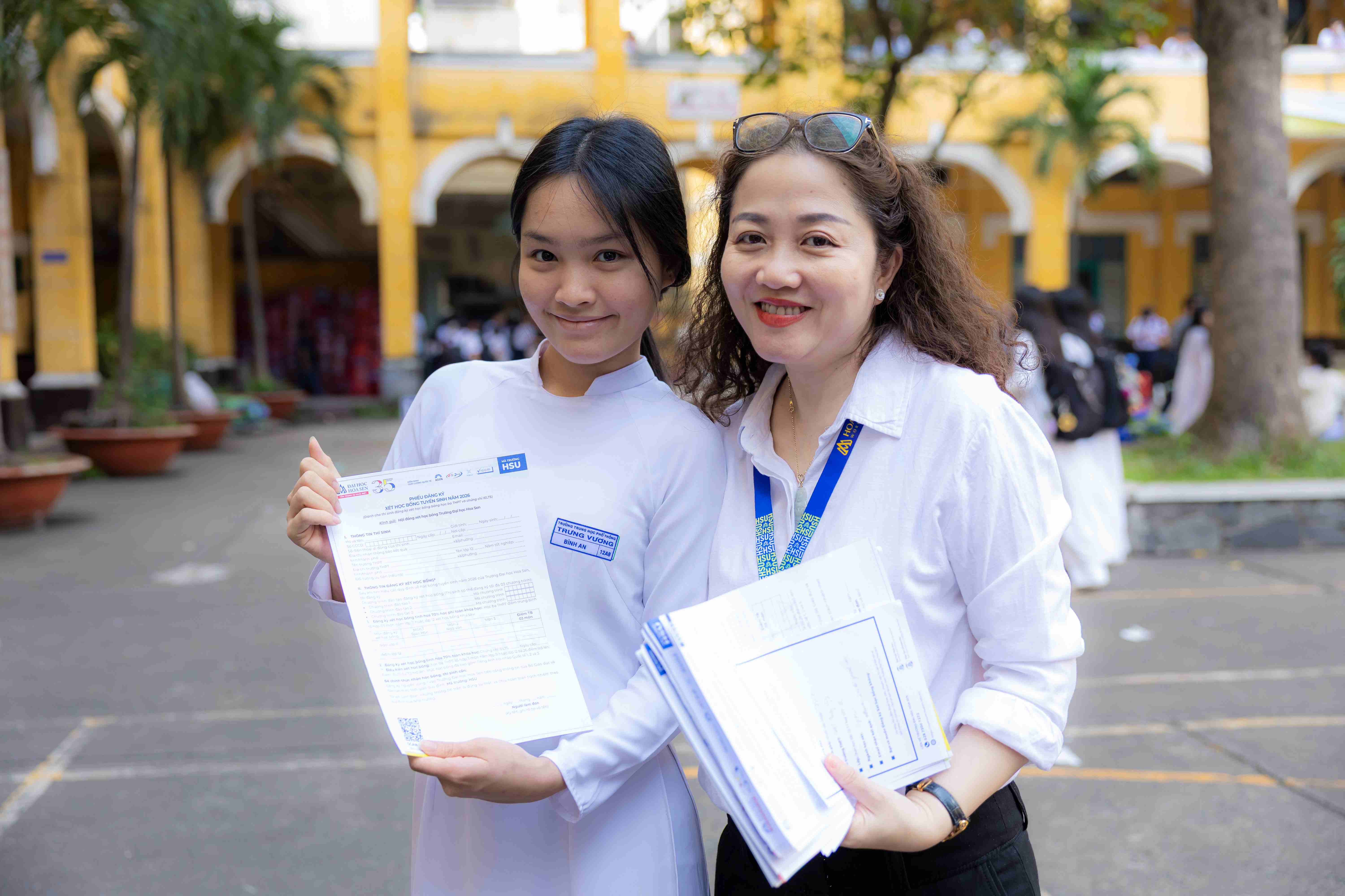Bên cạnh đó, đội ngũ Trung tâm Tuyển sinh HSU đã trực tiếp tư vấn cho học sinh về ngành học, lộ trình học tập phù hợp với năng lực cá nhân và các chính sách học bổng năm 2026. Ngay tại chương trình, nhiều bạn học sinh THPT Trưng Vương đã chủ động tìm hiểu thông tin và đăng ký xét học bổng, thể hiện sự quan tâm đến hành trình đại học phía trước.
