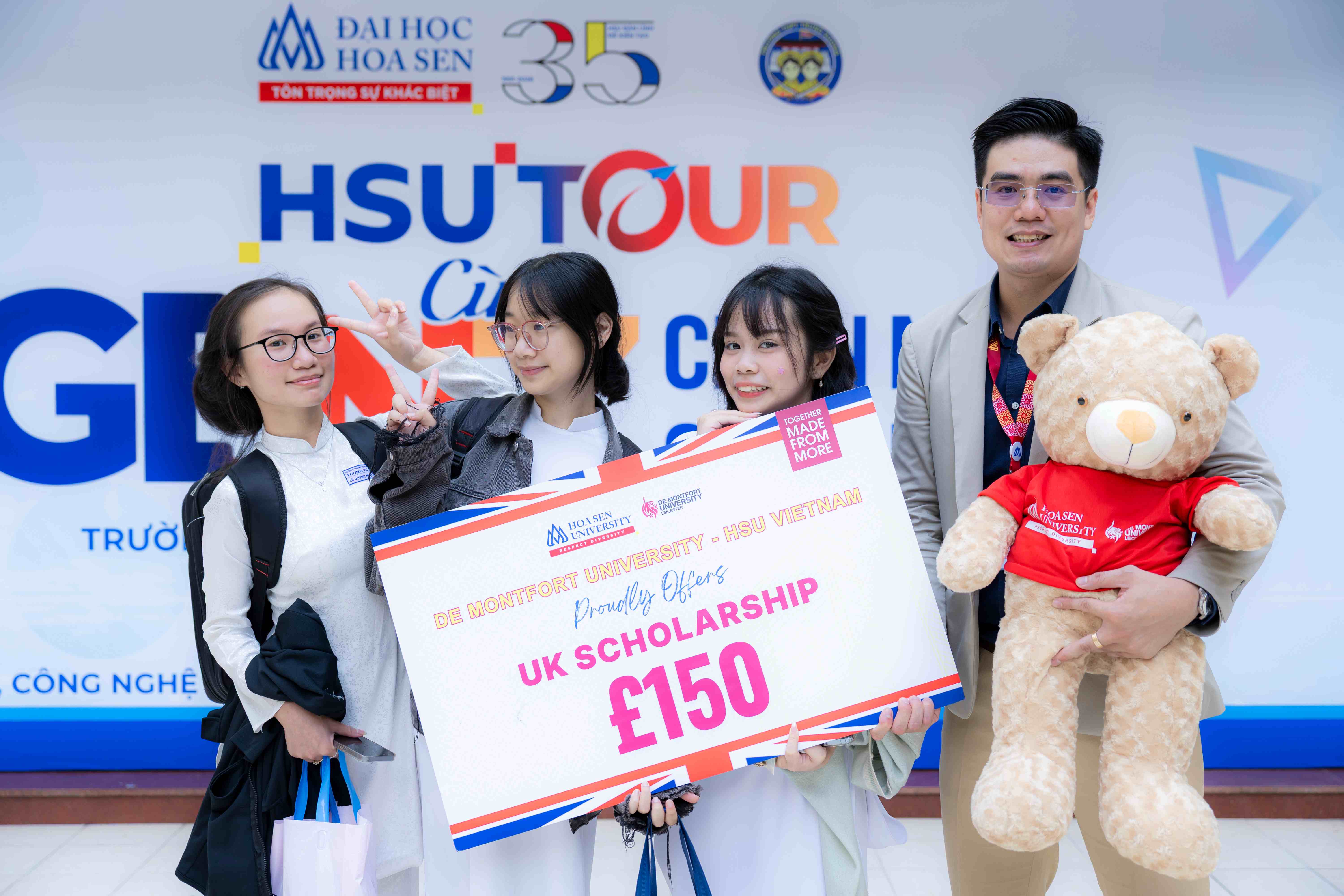 Tại chương trình, Viện Đào tạo và Hợp tác quốc tế HSU đã giới thiệu chương trình Liên kết quốc tế DMU-HSU và trao học bổng cho học sinh. Chương trình mang đến thêm lựa chọn học tập theo chuẩn Vương quốc Anh, phù hợp với những học sinh có định hướng học tập và phát triển trong môi trường toàn cầu.