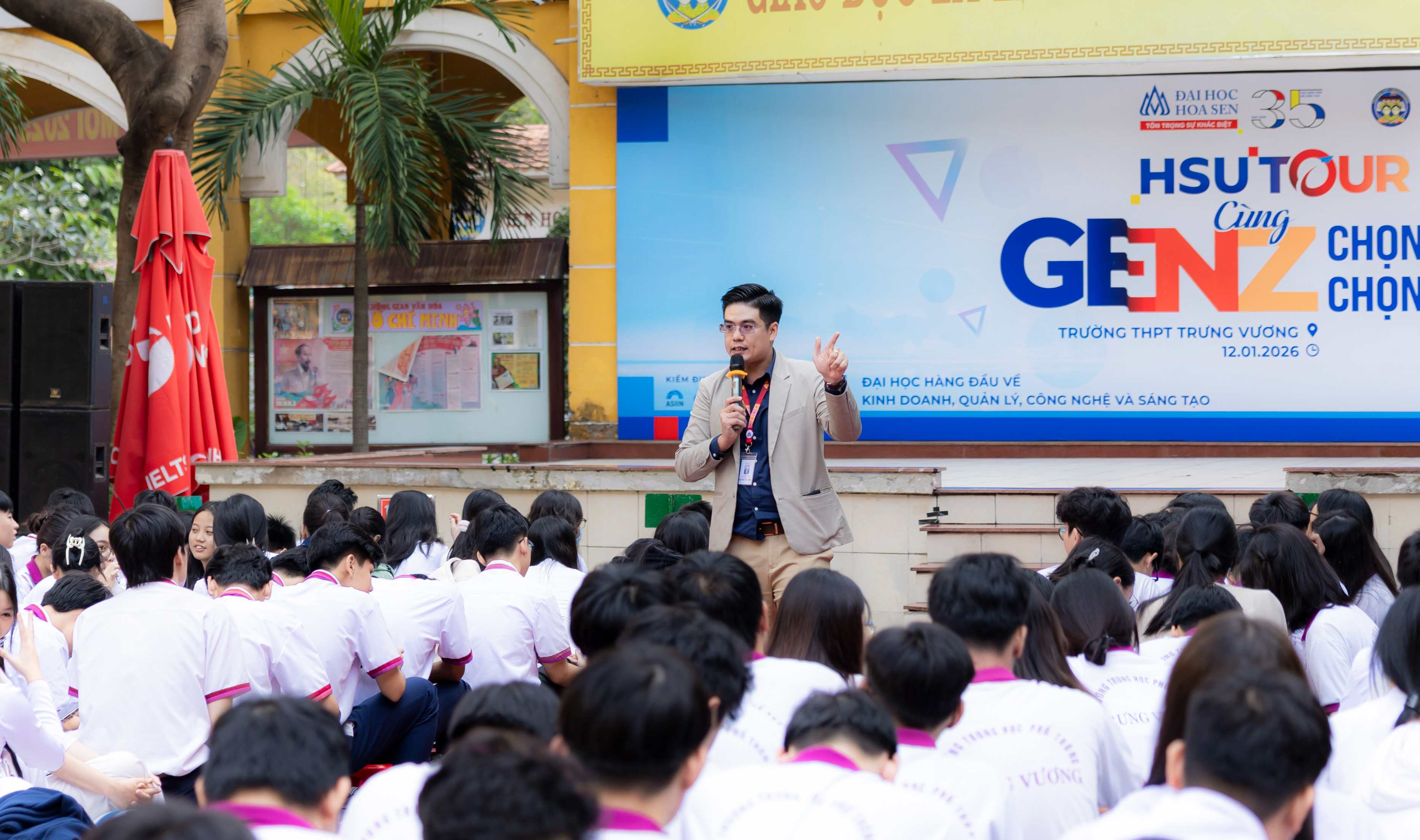 Sáng ngày 12/01/2026, chương trình HSU TOUR với chủ đề “Cùng Gen Z chọn ngành, chọn nghề” đã diễn ra sôi nổi tại Trường THPT Trưng Vương. Chương trình do Trường Đại học Hoa Sen (HSU) phối hợp tổ chức, mang đến không gian trải nghiệm hướng nghiệp truyền cảm hứng và giàu tính tương tác cho học sinh THPT trong giai đoạn chuẩn bị cho những lựa chọn quan trọng của tương lai.
