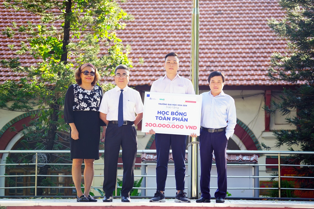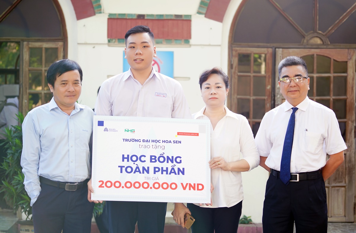 Phát biểu tại sự kiện, PGS.TS Nguyễn Ngọc Điện chúc mừng Đào Đình Đức đã nỗ lực vượt qua hoàn cảnh khó khăn, vươn lên học giỏi và Học bổng này của trường Đại học Hoa Sen là phần thưởng xứng đáng dành cho em tiếp tục thực hiện ước mơ của mình.