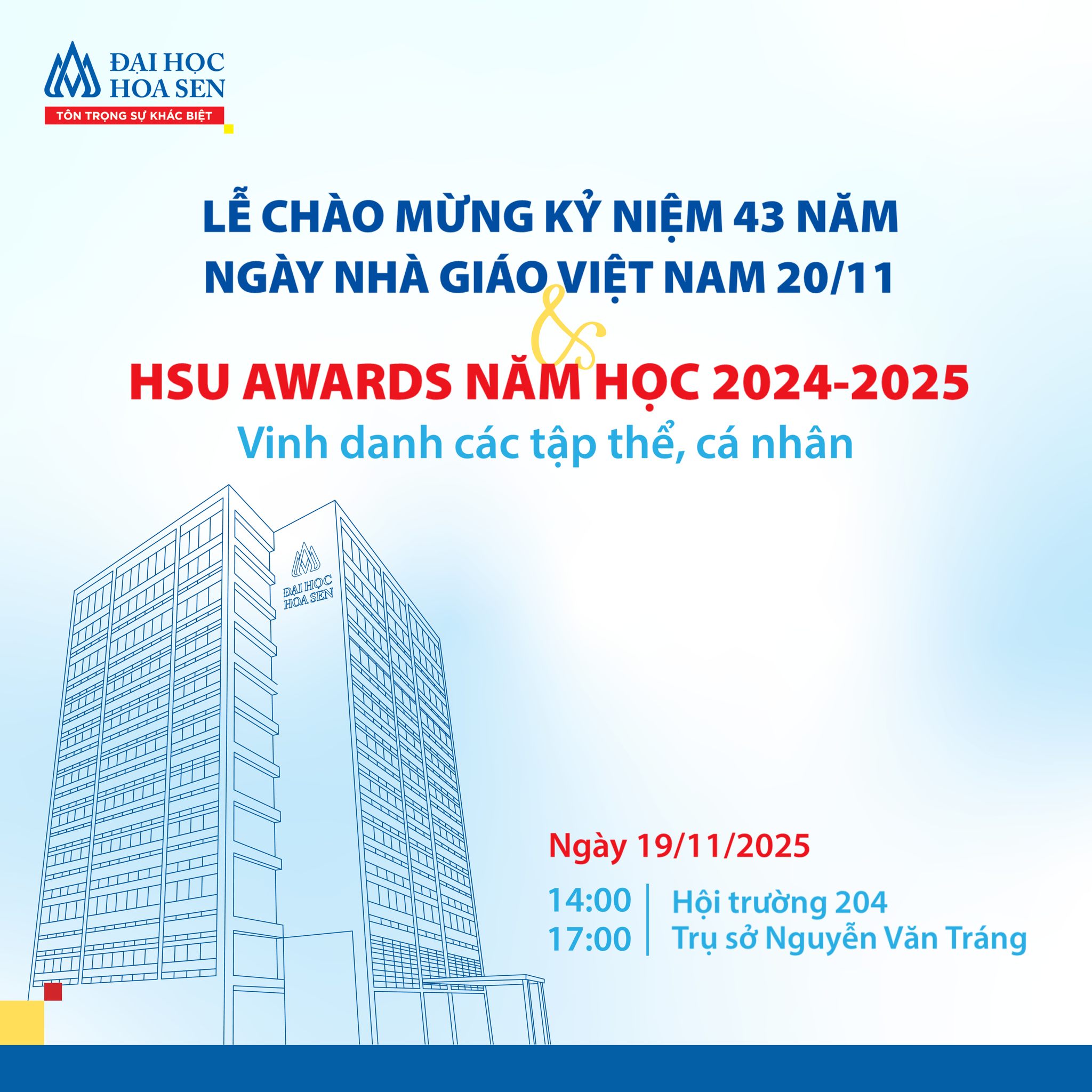 Lễ kỷ niệm 43 năm Ngày Nhà giáo Việt Nam 20/11 và Lễ vinh danh HSU Awards năm học 2024–2025