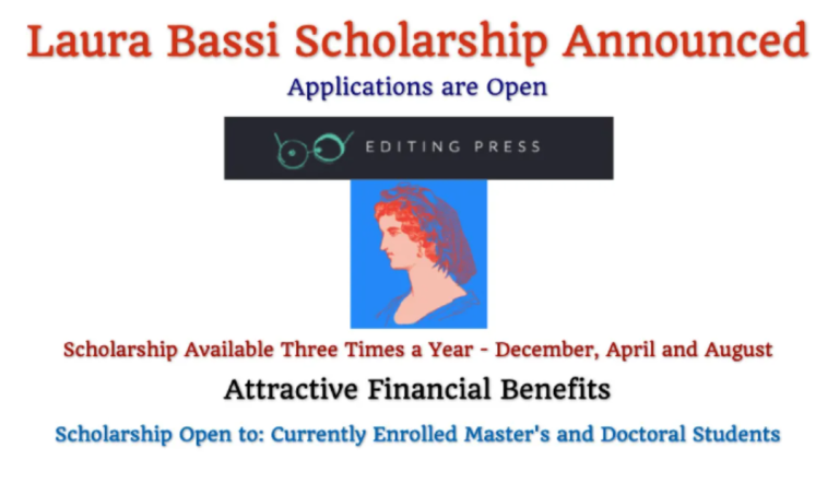 The Laura Bassi Scholarship 2024 – Details As mentioned earlier all disciplines are available for this open scholarship. If you are interested, you may avail this opportunity as it is available three times per year – December, April, and August. Currently enrolled master’s and doctoral students are eligible to submit applications for Laura Bassi Scholarship. About the Bassi Foundation It is a philanthropy foundation determined and committed to solving critical world problems and advancing knowledge by supporting overlooked or novel fields of research across different disciplines. The foundation is out there with a mission to accelerate insights and discoveries into...