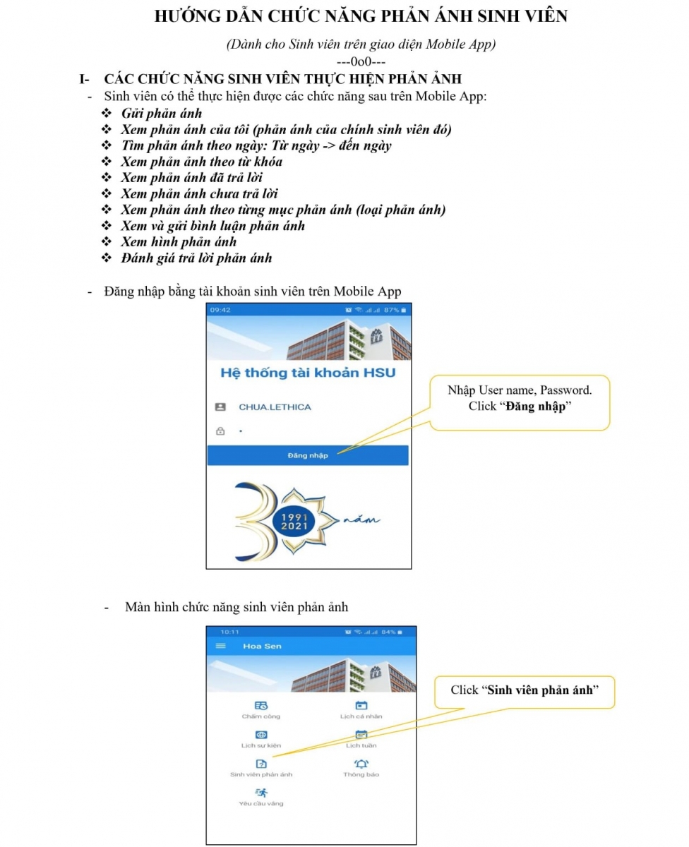 Hướng dẫn chức năng phản ánh sinh viên trên Mobile App