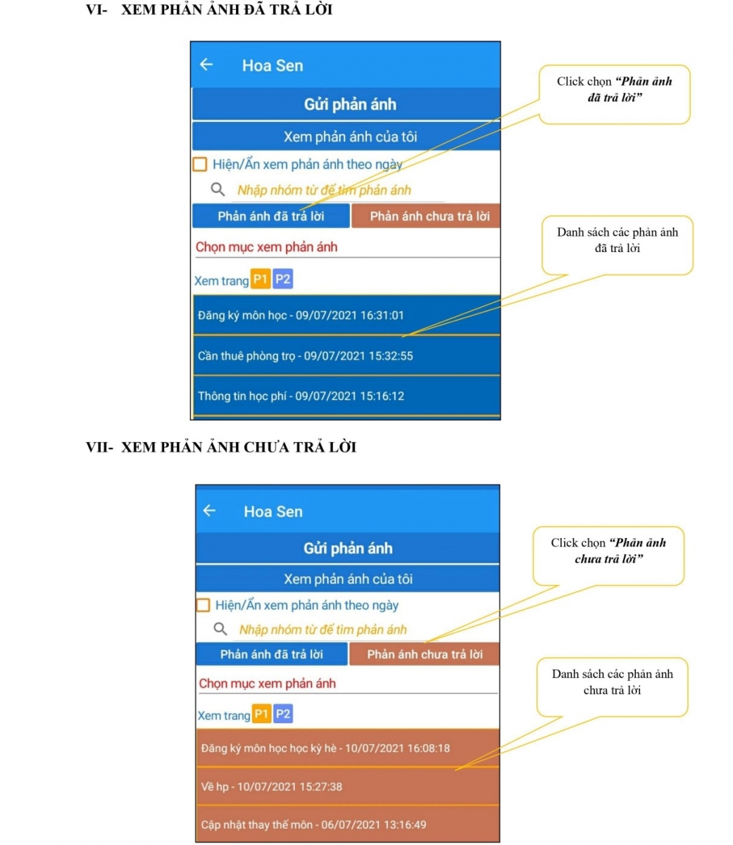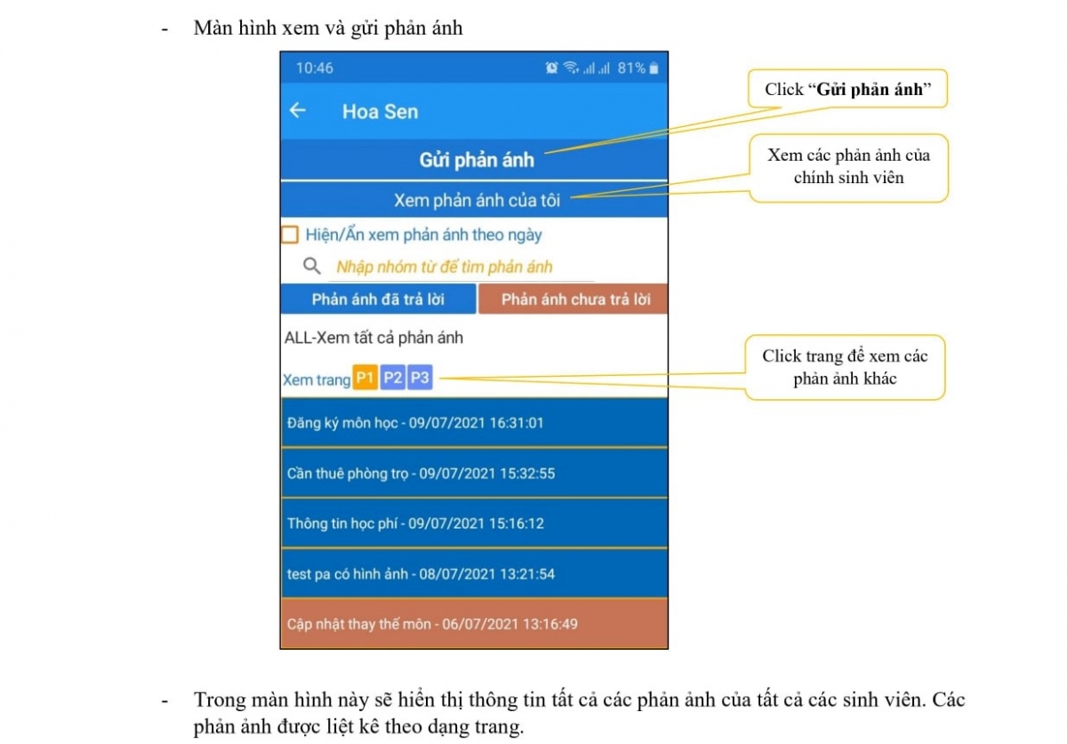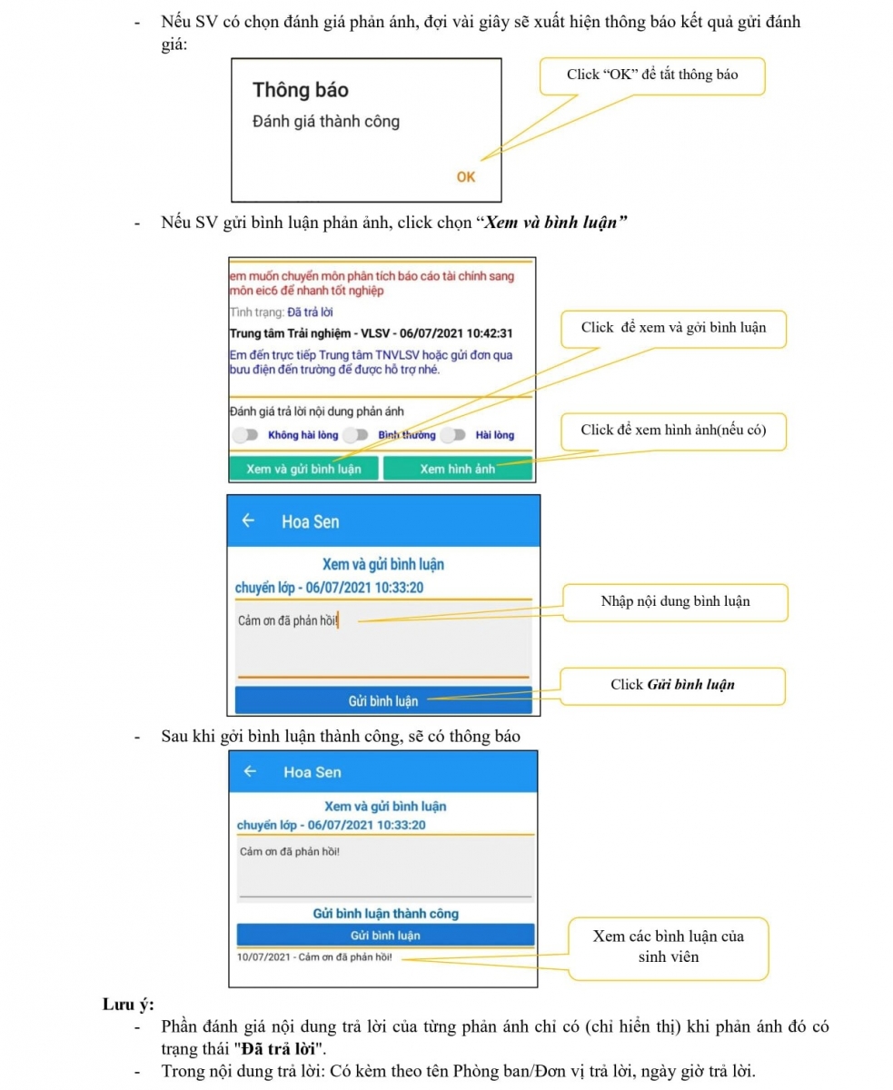 >> Hướng dẫn chức năng phản ánh sinh viên dành cho sinh viên trên giao diện Mobile App