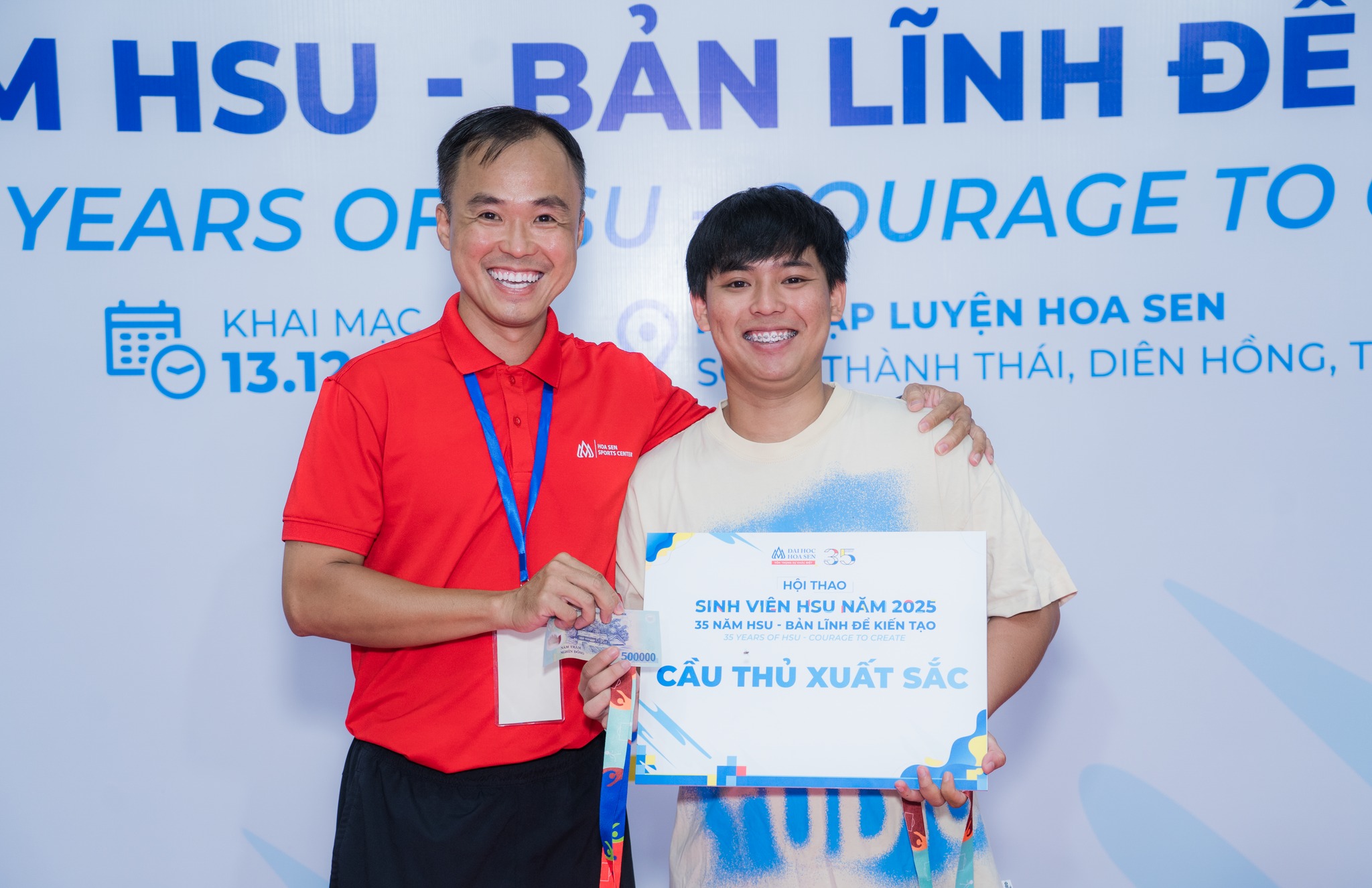 ThS. Nguyễn Hải Ninh nhấn mạnh, Hội thao không chỉ là sân chơi rèn luyện thể chất, mà còn là môi trường để sinh viên rèn luyện bản lĩnh, tinh thần đồng đội, lối sống tích cực và khả năng cân bằng giữa học tập – vận động – phát triển cá nhân. Đây cũng chính là những giá trị cốt lõi mà HSU luôn chú trọng trong hành trình giáo dục toàn diện người học.