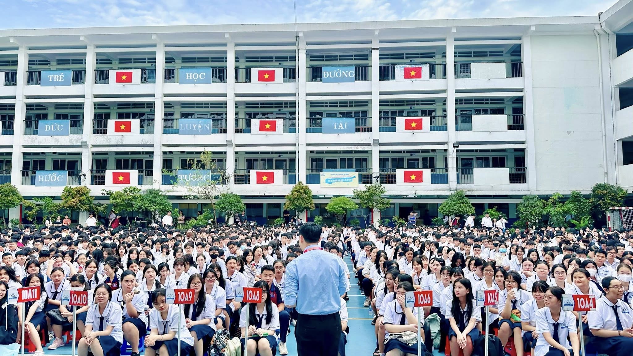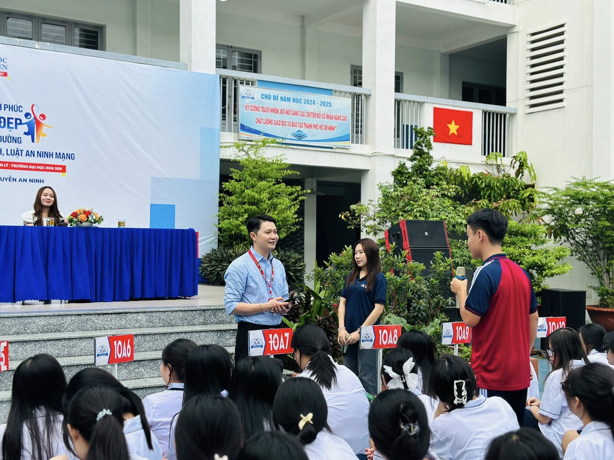 Sáng ngày 27/8/2025, tại Trường THPT Nguyễn An Ninh, Khoa Luật, Trường Đại học Hoa Sen (HSU) đã tổ chức buổi báo cáo chuyên đề đầy thực tế với chủ đề: “Xây dựng tình bạn đẹp – Nói không với bạo lực học đường và kỹ năng sử dụng mạng Internet thông minh”.