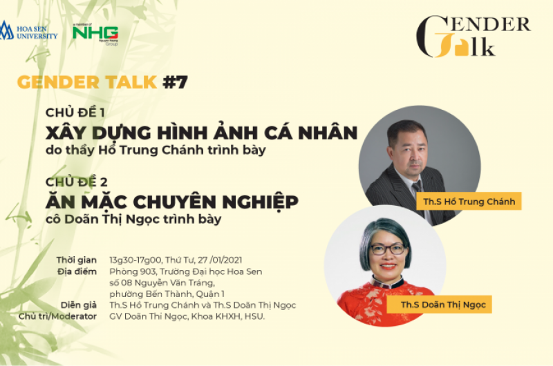 January 19, 2021 GENDER TALK INTRODUCE Gender Talk is an academic activity on Gender and Gender Equality of the Department of Liberal Education, Faculty of Social Sciences, Hoa Sen University (HSU). Gender Talk was born in January 2019 and is a place for experts, HSU students and those who are interested to share, learn, exchange, explore and explore multi-dimensional perspectives on Gender and gender trends. towards Gender Equality in Vietnam and internationally. Gender Talk can also be a place to inspire everyone, especially HSU students, to raise awareness about gender equality and promote a fair, equal, civilized, progressive, and sustainable society. solid. PURPOSE REGISTER TO ATTEND AT : https://forms.gle/pvZU13HYf4tARicq5...