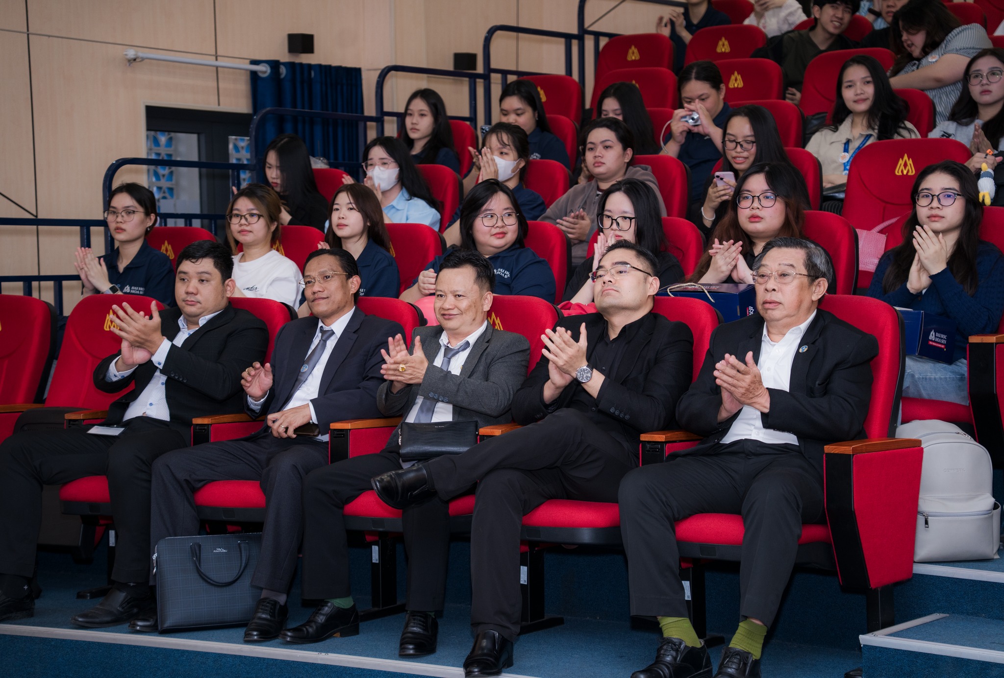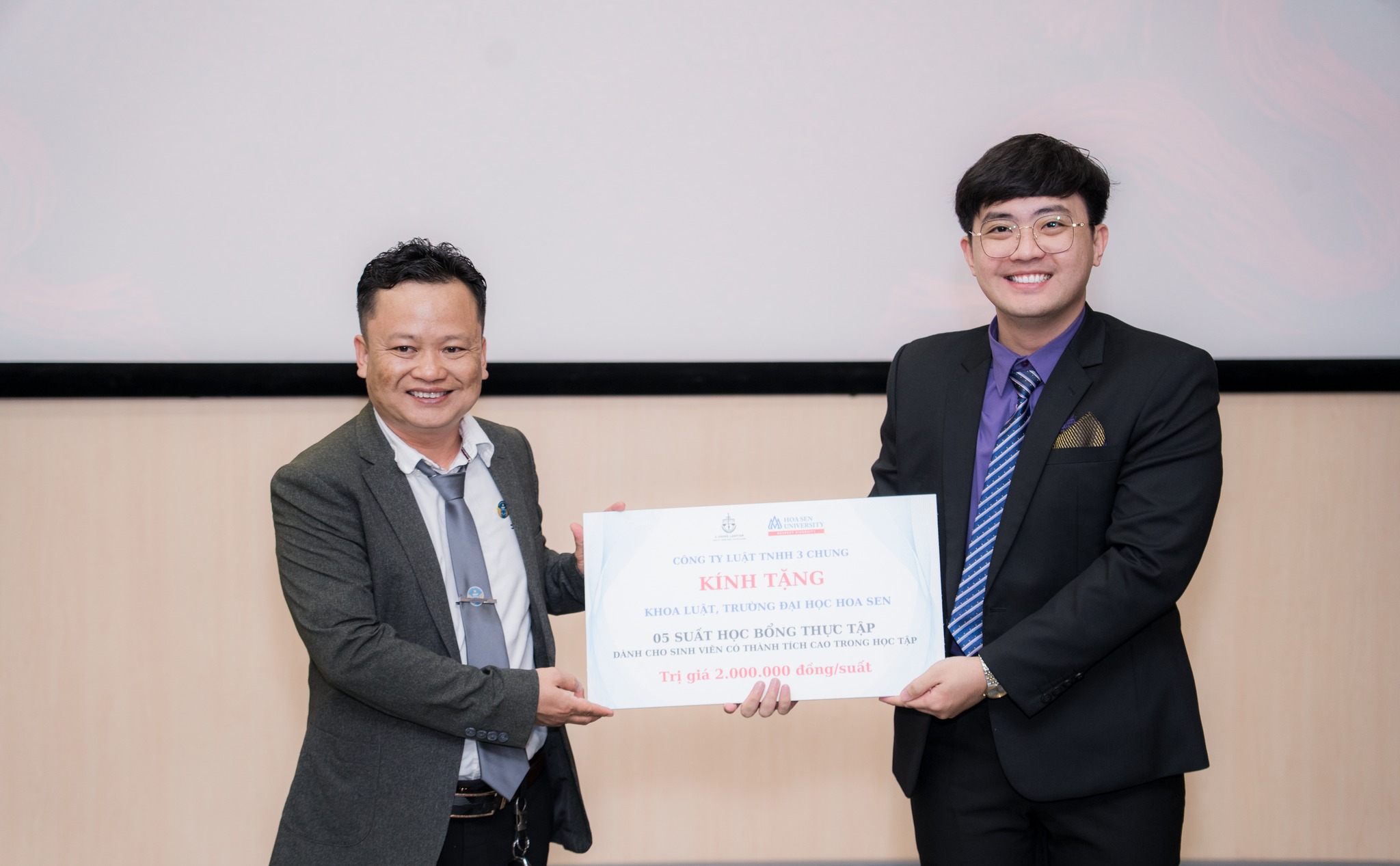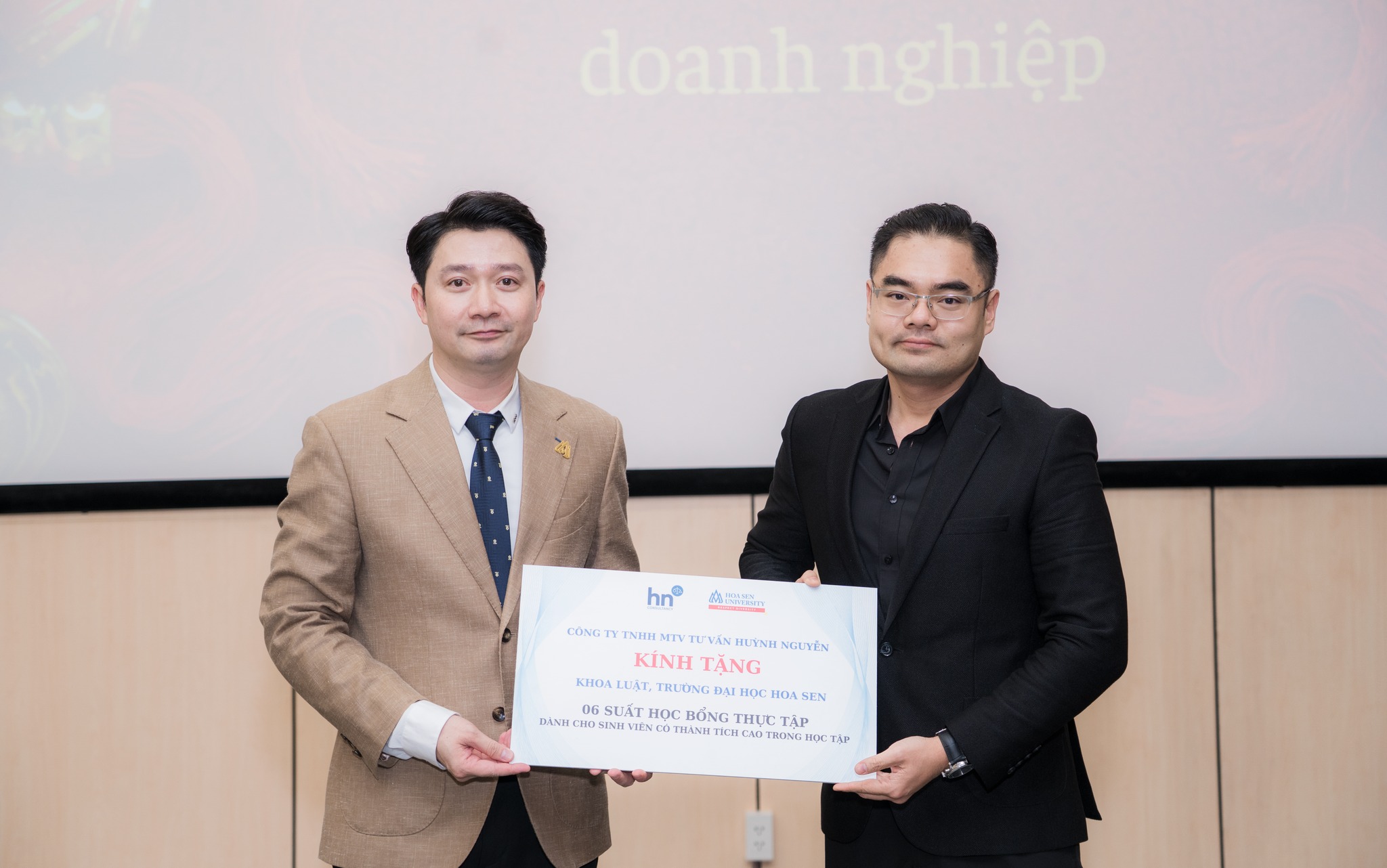 Tại đây, các bạn sinh viên đã được lắng nghe những chia sẻ tâm huyết về nghề nghiệp, giúp các em có định hướng vững vàng trước khi bước vào kỳ thực tập quan trọng. Đặc biệt, “món quà Tết” ý nghĩa nhất chính là 15 suất học bổng thực tập giá trị đã được trao trực tiếp ngay tại sân khấu: